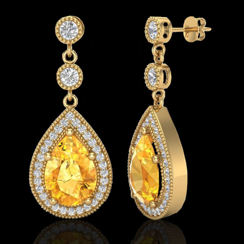 REF-52N3F - SKU: 23114 ---- 4.50 ctw Citrine & Micro VS/SI Diamond Earrings Designer 18k Yellow Gold