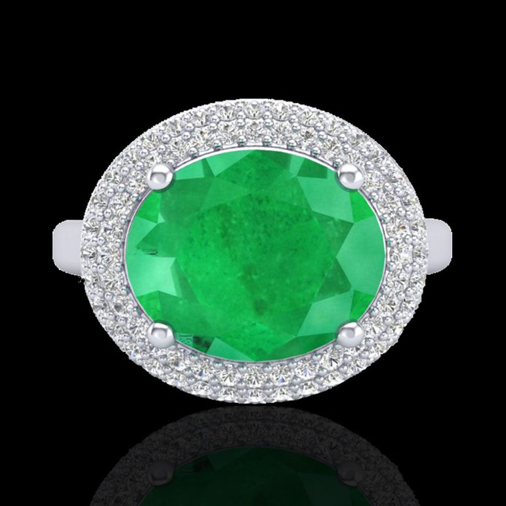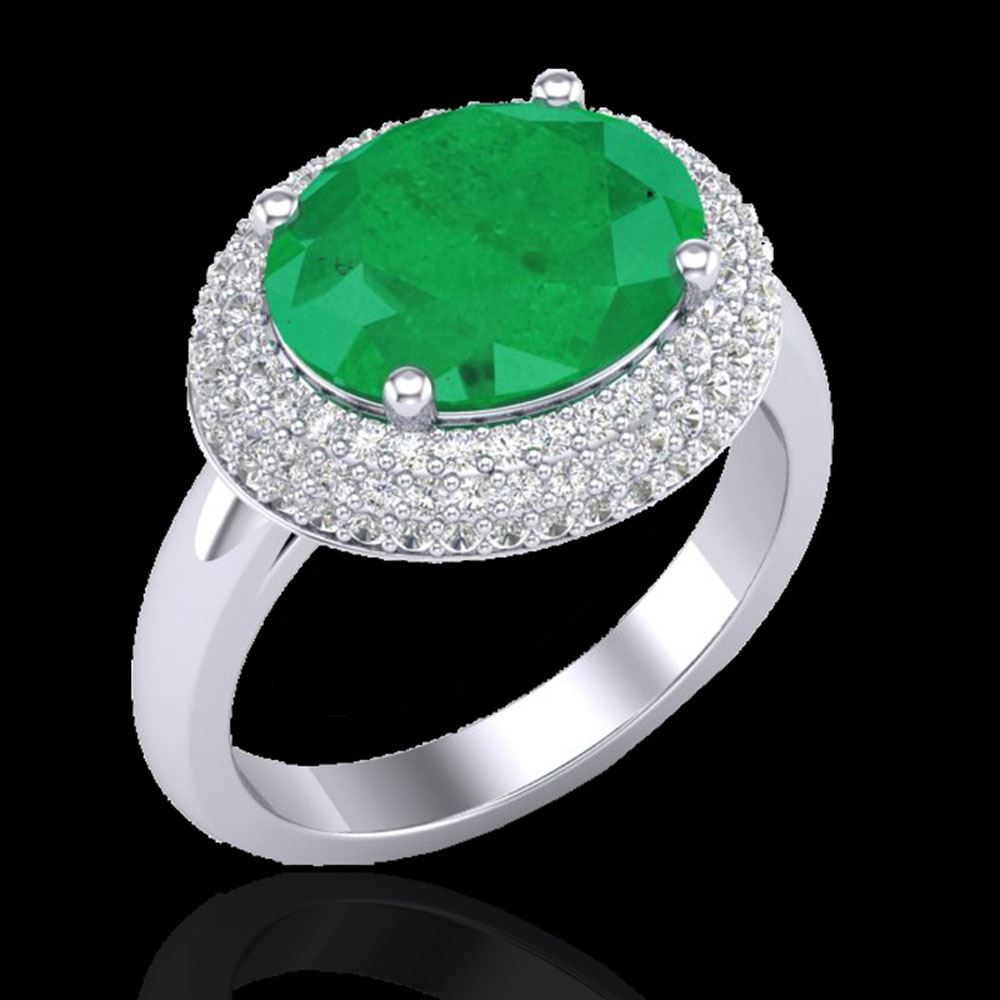 REF-119G6W - SKU: 20913 ---- 4.50 ctw Emerald & Micro Pave VS/SI Diamond Ring 18k White Gold