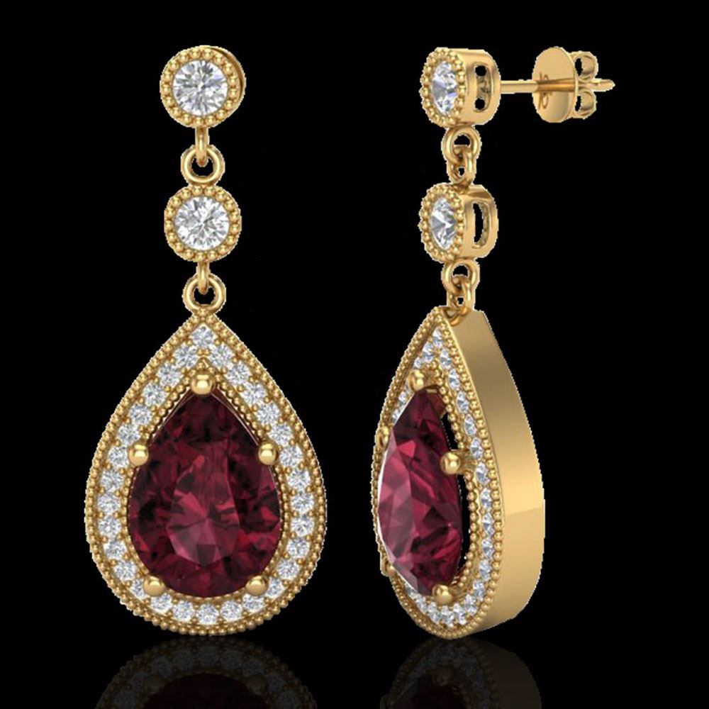 REF-51F8M - SKU: 23119 ---- 4.50 ctw Garnet & Micro Pave VS/SI Diamond Earrings 18k Yellow Gold