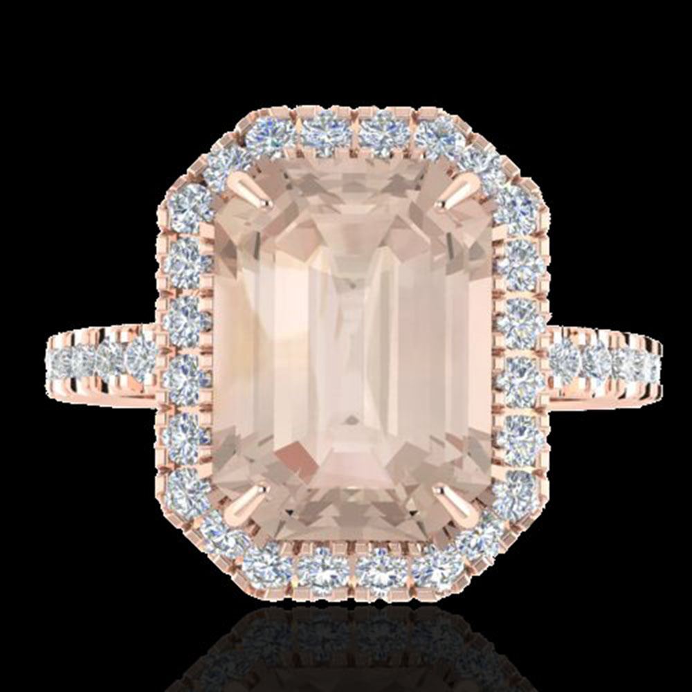SKU: 21430 ---- 4.50 ctw Morganite & Micro Pave VS/SI Diamond Ring 14k Rose Gold