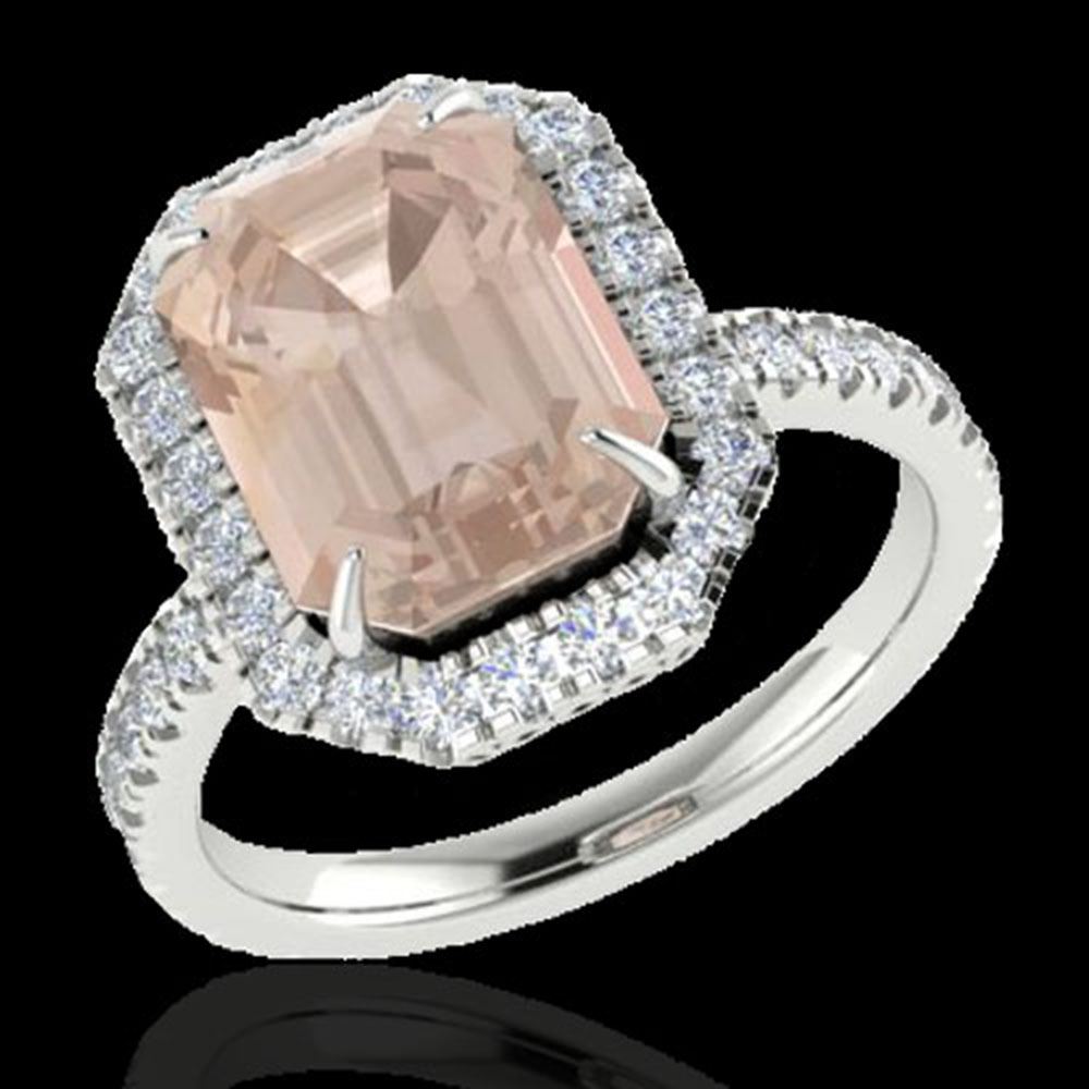 REF-112W4H - SKU: 21431 ---- 4.50 ctw Morganite & Micro Pave VS/SI Diamond Ring 18k White Gold