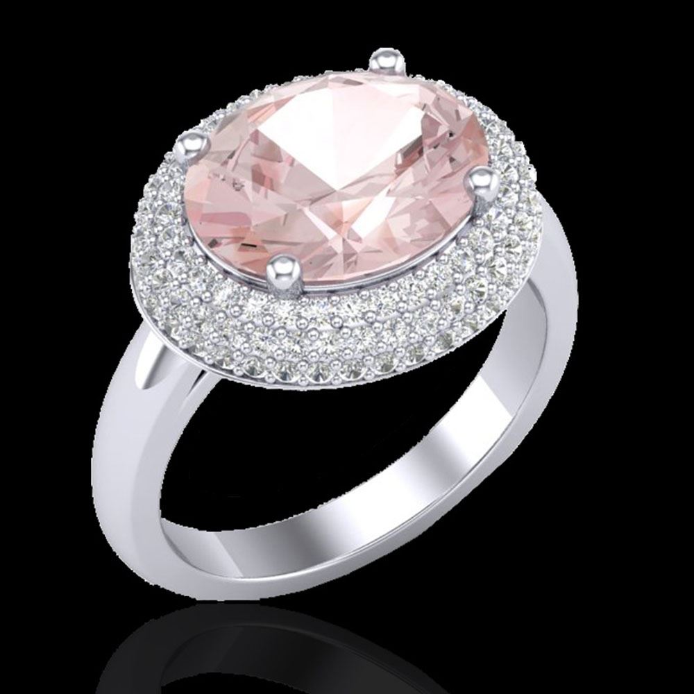 REF-163M8G - SKU: 20919 ---- 4.50 ctw Morganite & Micro Pave VS/SI Diamond Ring 18k White Gold
