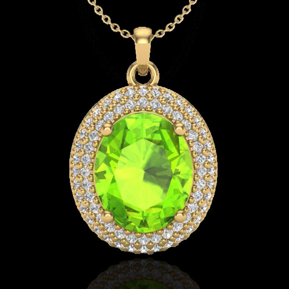 REF-112M8G - SKU: 20570 ---- 4.50 ctw Peridot & Micro Pave VS/SI Diamond Necklace 18k Yellow Gold