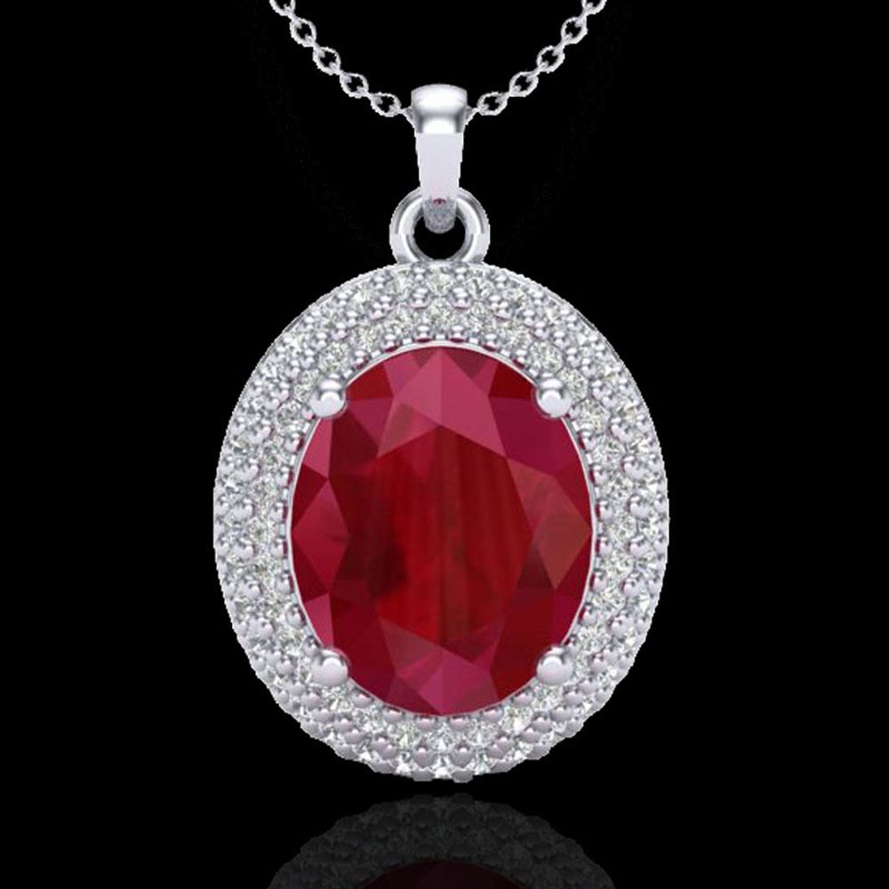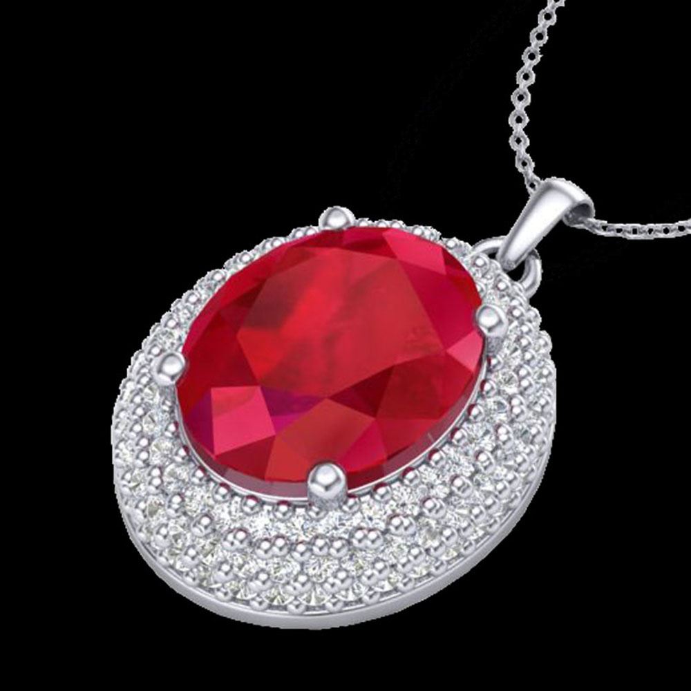 REF-120K9Y - SKU: 20571 ---- 4.50 ctw Ruby & Micro Pave VS/SI Diamond Necklace 18k White Gold