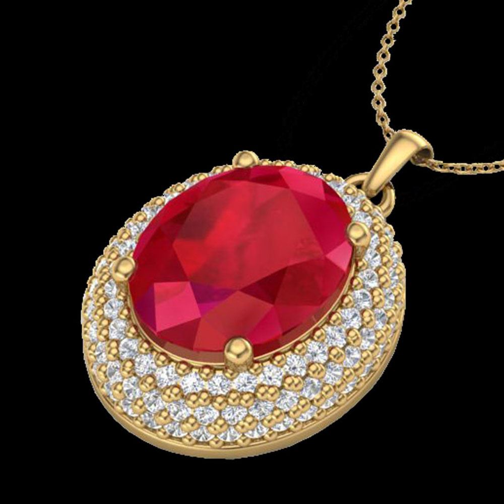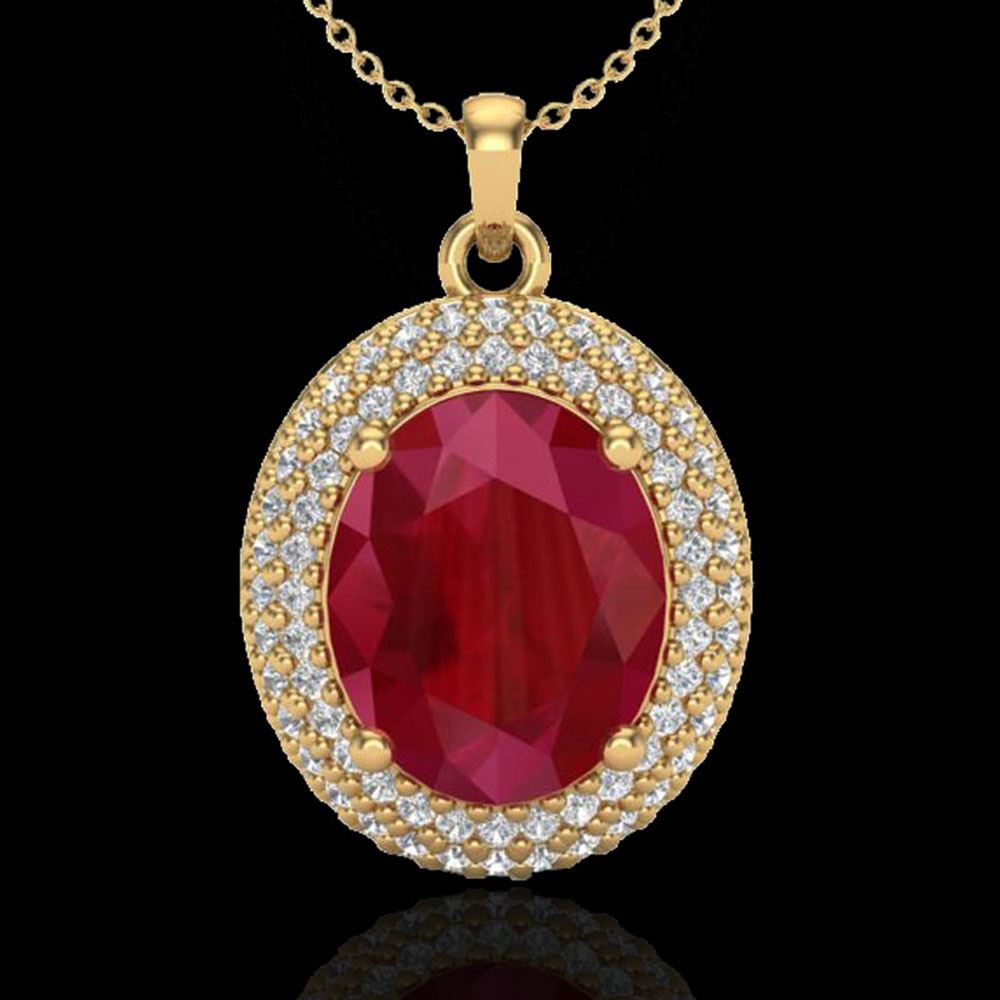 REF-120X9A - SKU: 20572 ---- 4.50 ctw Ruby & Micro Pave VS/SI Diamond Necklace 18k Yellow Gold