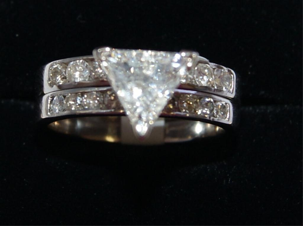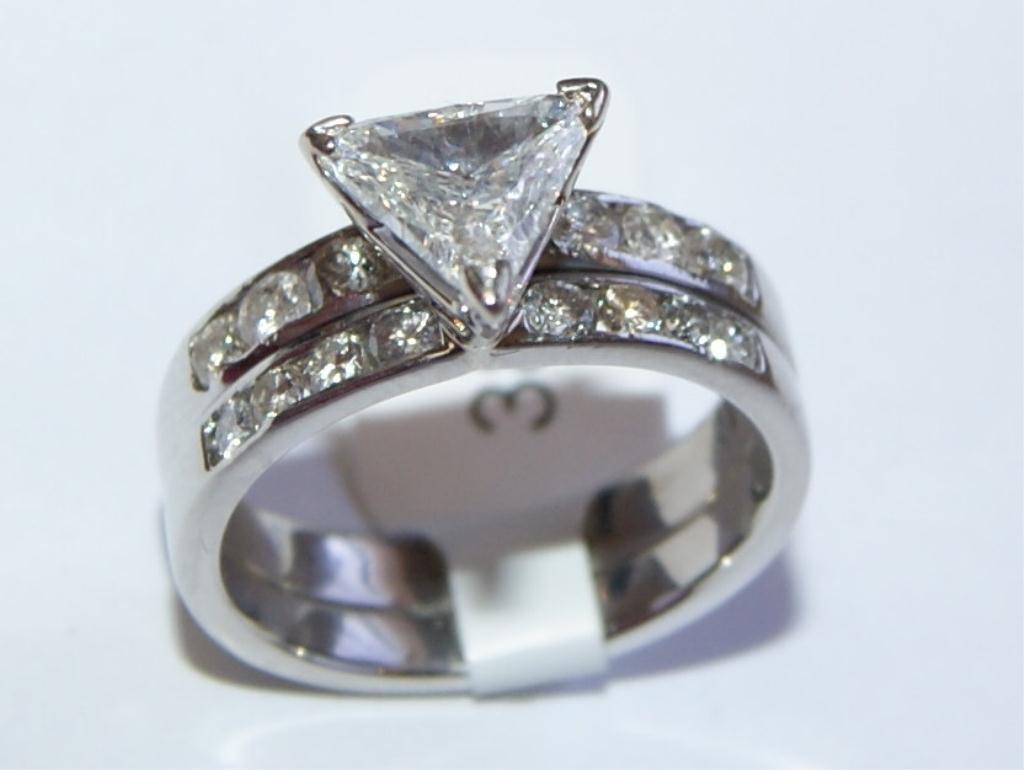 Total Retail $48,945 14Kt White Gold (#1) Retail Price $48,945 14Kt White Gold 1.50Ctw SI1 GH Color Center Diamond Trillion 3.00Ctw Round Diamond SI1 GH Color on Side