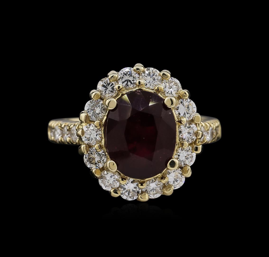 One ring featuring: 14KT yellow gold weighing 6.50 grams containing one ruby with a total weight of 4.50ct and diamonds with a total weight of 1.38ct.