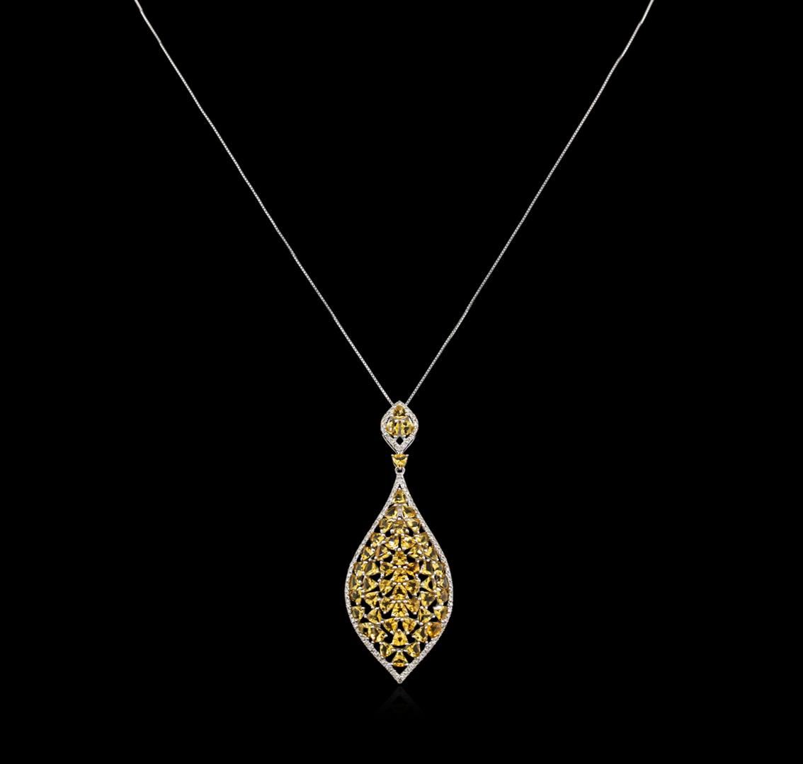 One pendant with chain featuring: 14KT white gold weighing 6.40 grams containing citrines with a total weight of 4.50ct and diamonds with a total weight of 0.50ct.