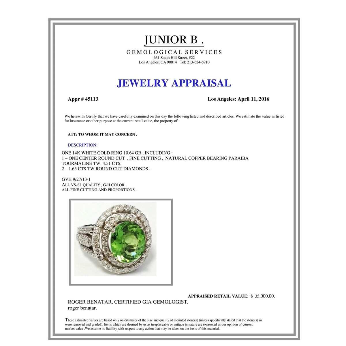 18K WHITE GOLD NATURAL COPPER BEARING PARIBA TOURMALINE:10.64GRAMS/DIAMOND:1.65CT/COPPER BEARING PARIBA TOURMALINE:4.51CT/#GVR1168