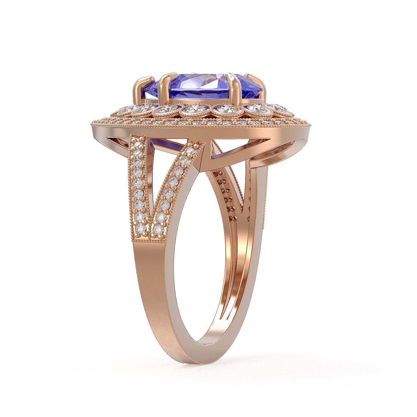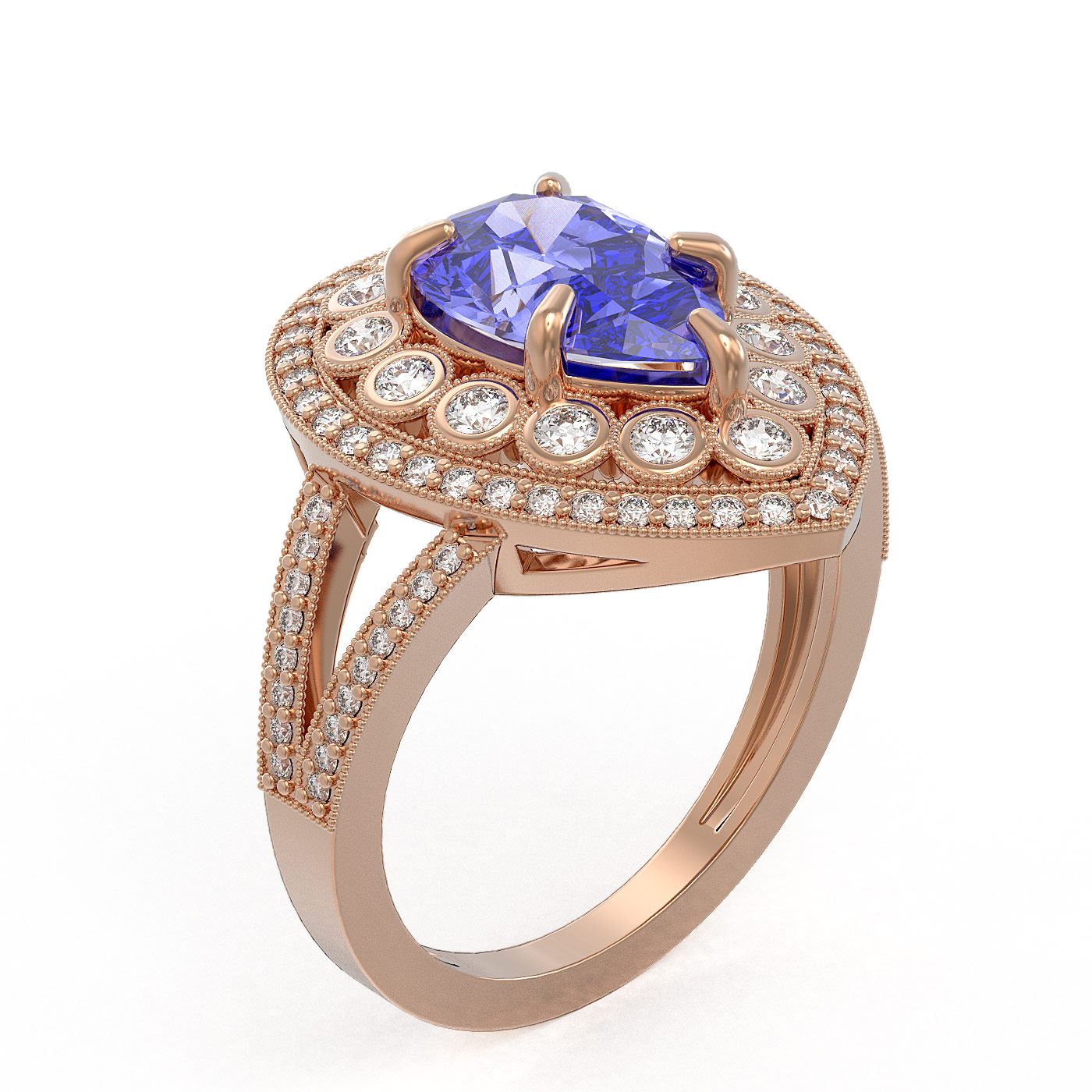 SKU: 43128 ---- 4.52 ctw Certified Tanzanite & Diamond Victorian Ring 14K Rose Gold
