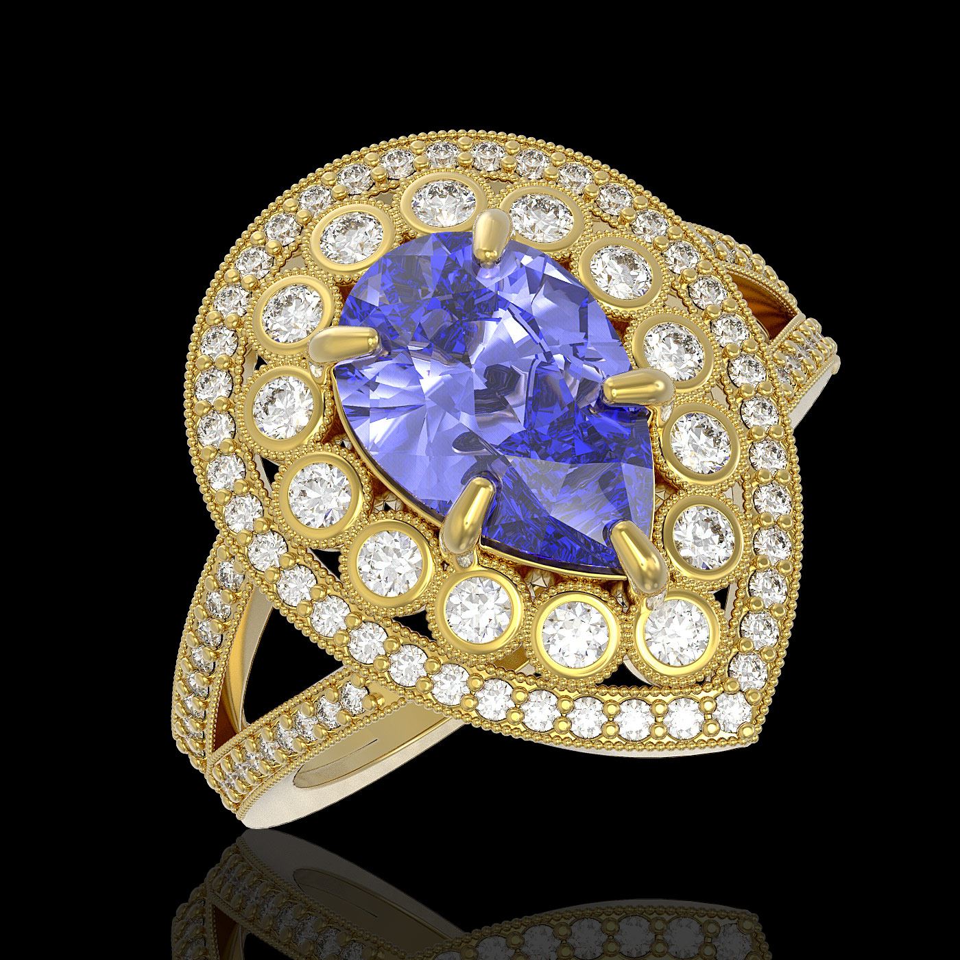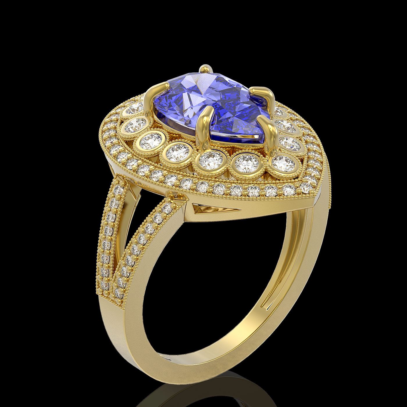REF-245M5G - SKU: 43129 ---- 4.52 ctw Certified Tanzanite & Diamond Victorian Ring 14K Yellow Gold