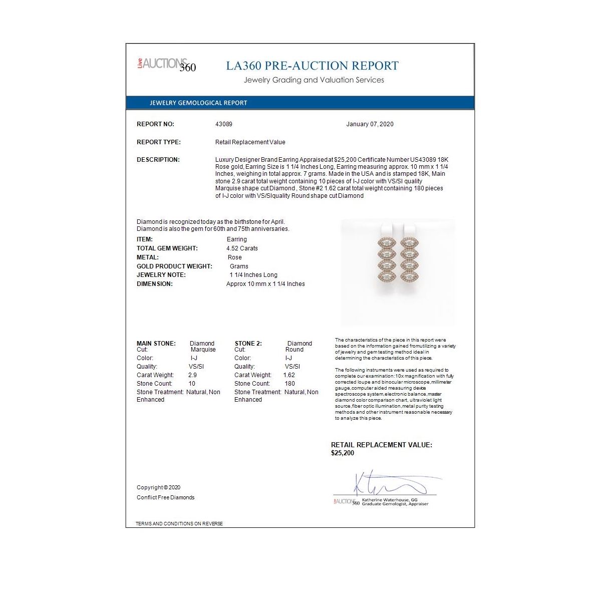 REF-381F8M - SKU: 43089 ---- 4.52 ctw Marquise Cut Diamond Micro Pave Earrings 18K Rose Gold