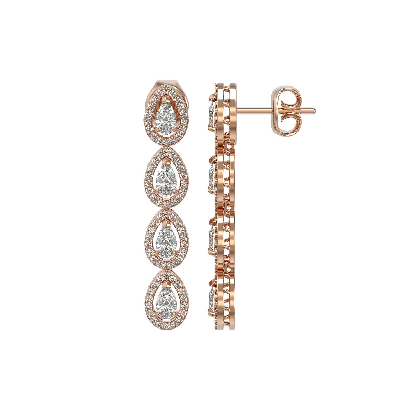 4.52 ctw Pear Cut Diamond Micro Pave Earrings 18K Rose Gold