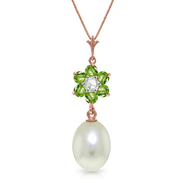 Genuine 14K Rose Gold 4.53 ctw Pearl, Peridot & Diamond Necklace