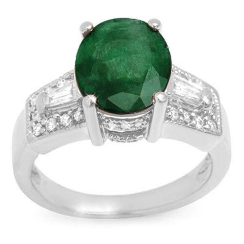 REF-77A8X -10957 ---- 4.55 CTW Emerald & Diamond Ring 14K White Gold ---- Luxury Designer Brand Ring Appraised at $5,150 Certificate Number US10957 14k White gold, Ring Size is 6.75, Ring measuring approx. 3/8" x 11/16" , weighing in total approx. 6.5 grams. Made in the USA and is stamped 14k, Main stone 4 carat total weight containing 1 pieces of Intense Green color with AAA quality Oval shape cut Emerald , Stone #2 0.55 carat total weight containing 26 pieces of H-I color with VS/SI quality Round shape cut Diamond