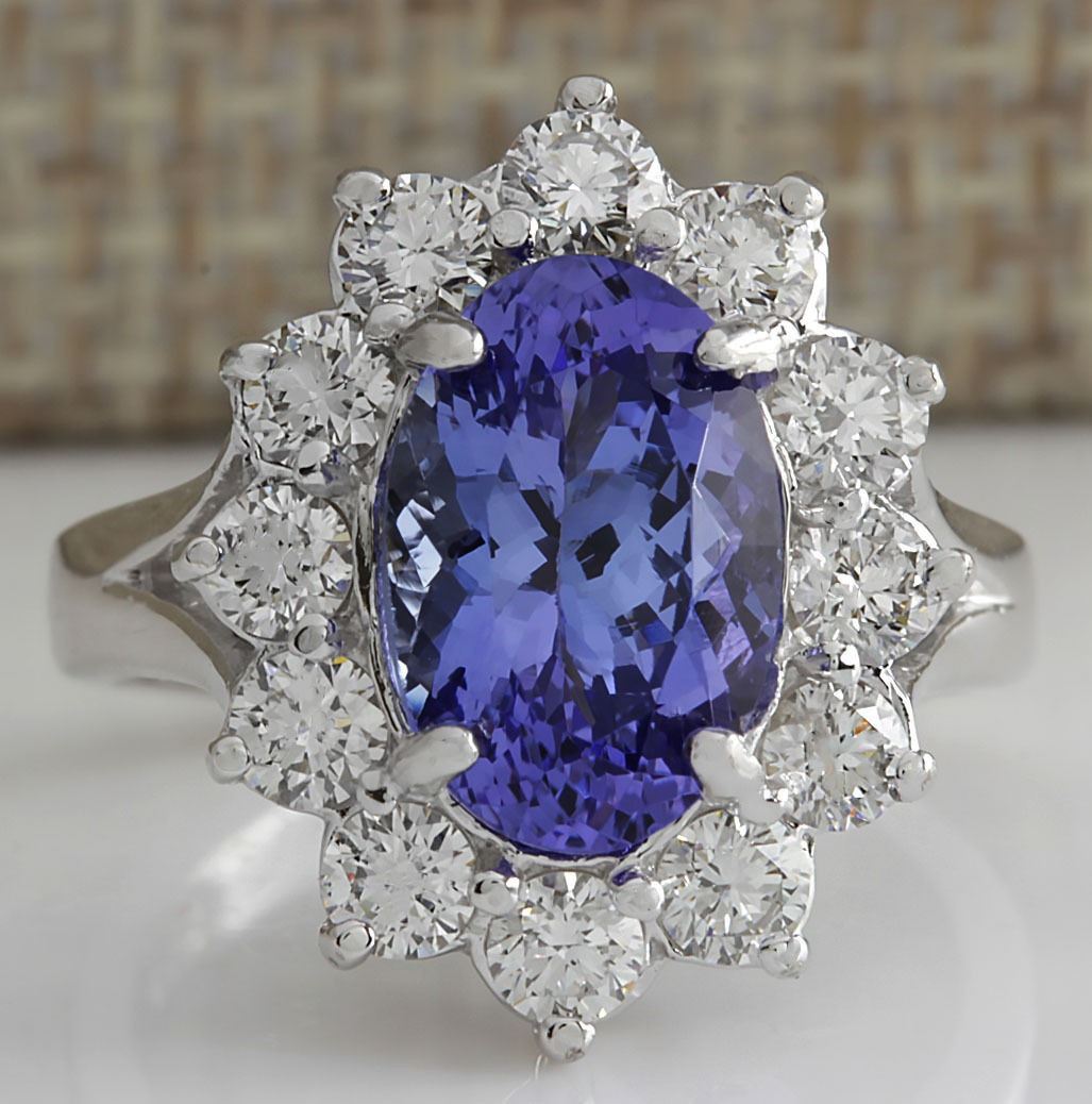 4.55 CTW Natural Blue Tanzanite And Diamond Ring 18K Solid White Gold