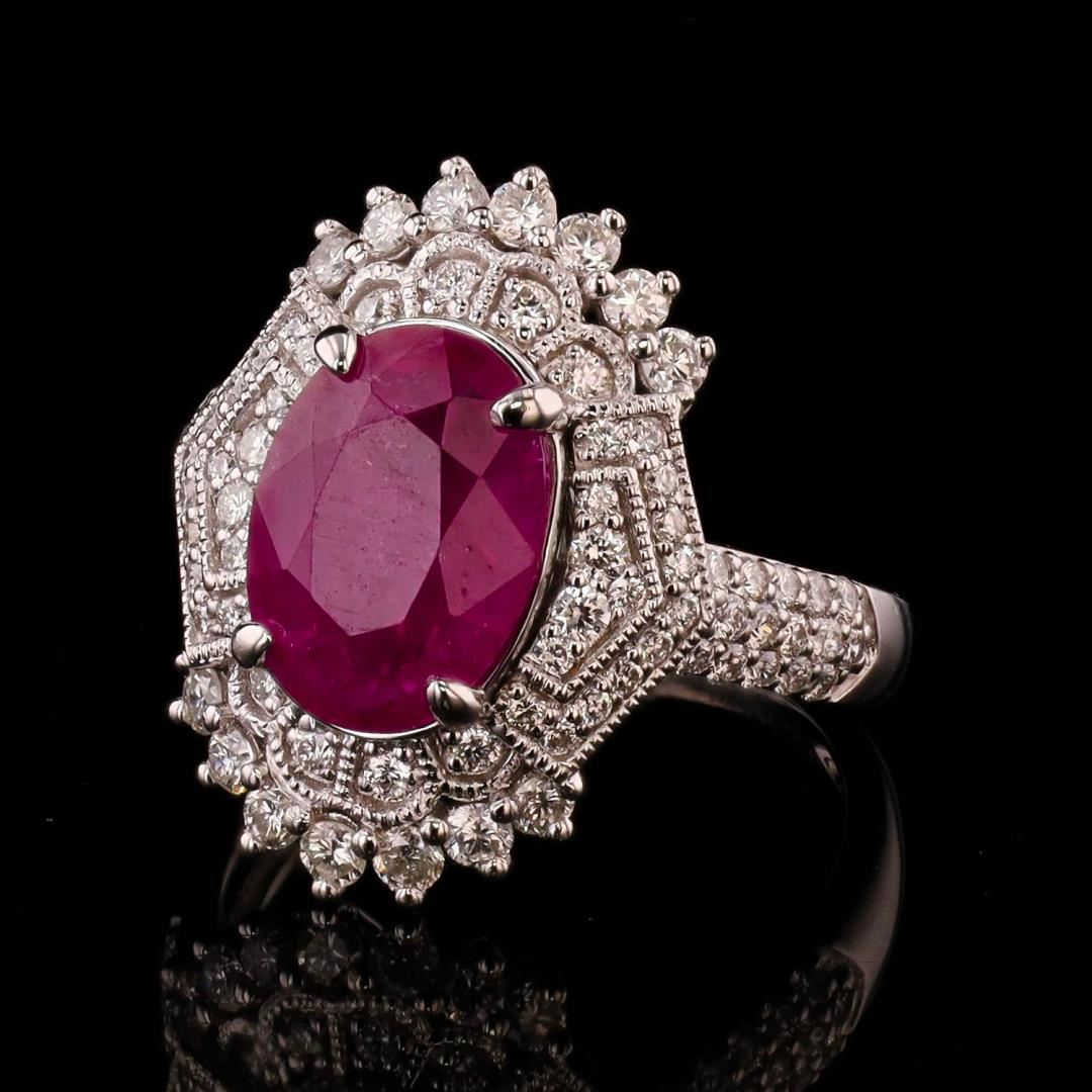 4.55 ctw BURMESE Ruby and 0.90 ctw Diamond Platinum Ring (GIA CERTIFIED)
