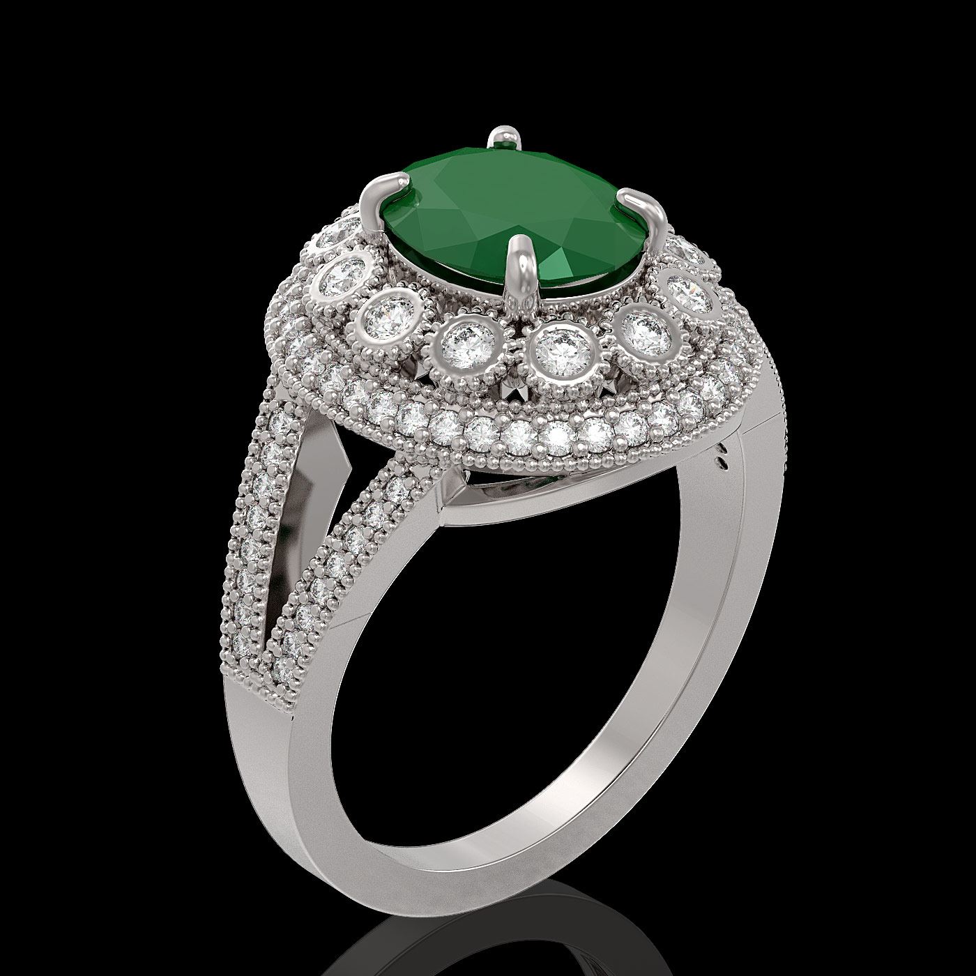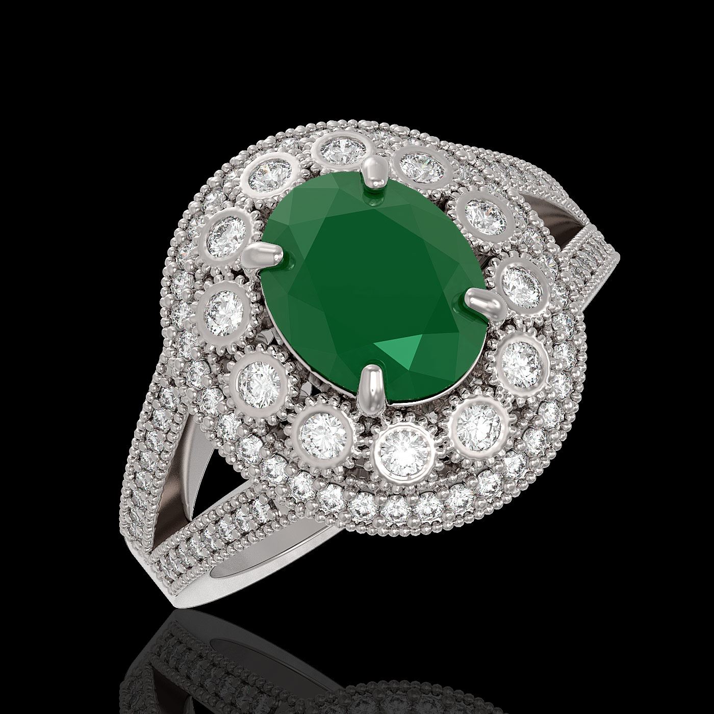 REF-143N6F - SKU: 43574 ---- 4.55 ctw Certified Emerald & Diamond Victorian Ring 14K White Gold