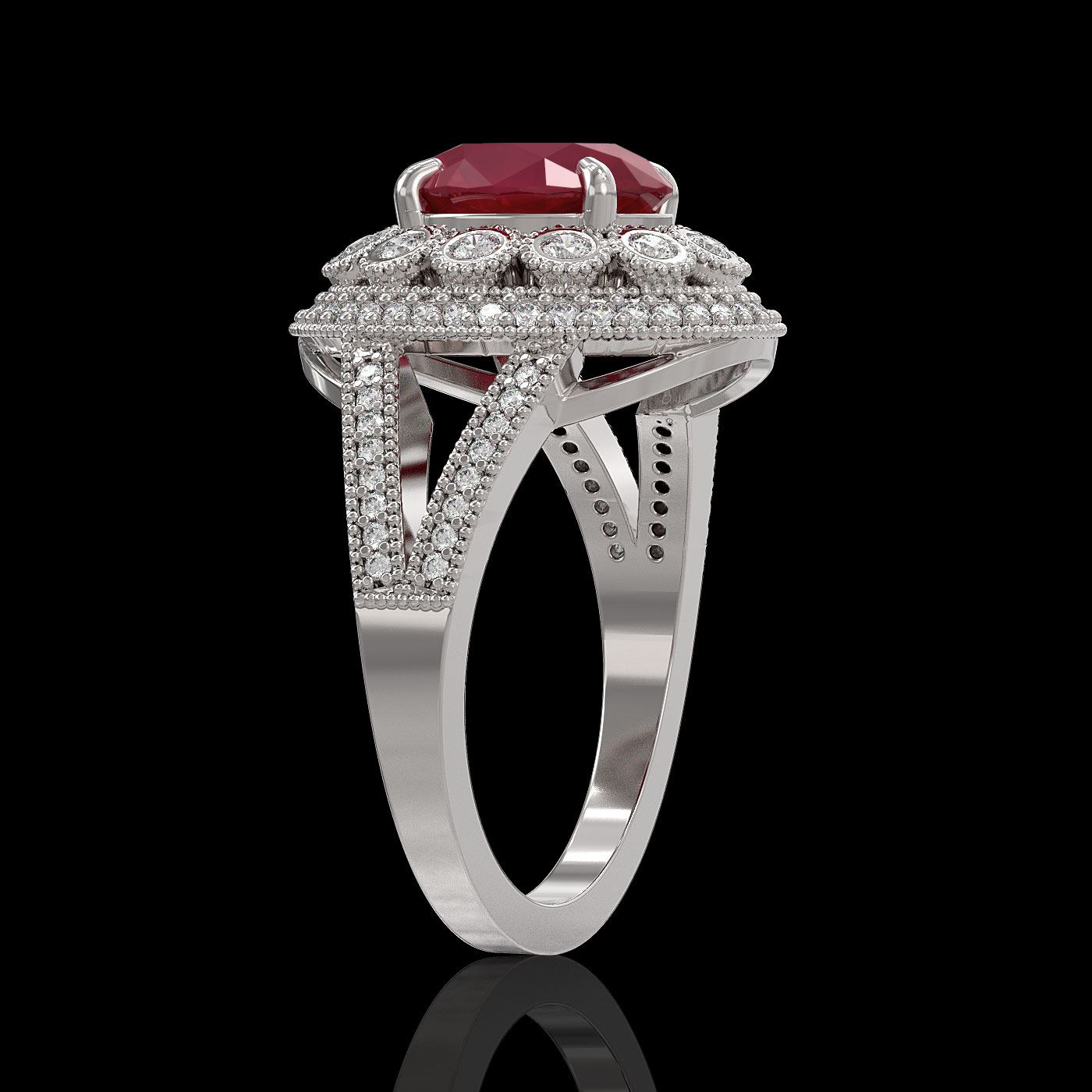 SKU: 43577 ---- 4.55 ctw Certified Ruby & Diamond Victorian Ring 14K White Gold