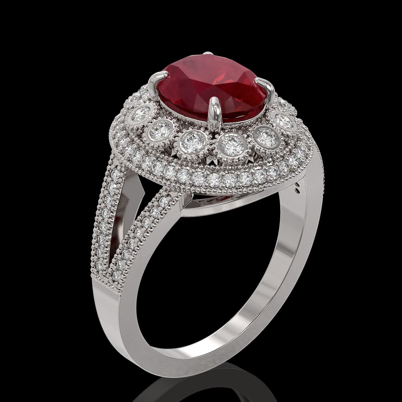 SKU: 43577 ---- 4.55 ctw Certified Ruby & Diamond Victorian Ring 14K White Gold