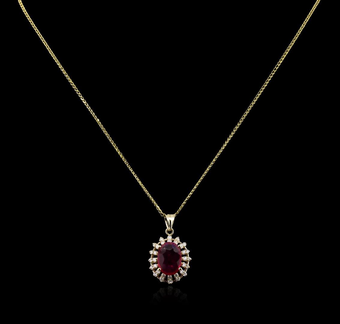 One pendant featuring: 14KT yellow gold weighing 4.14 grams containing one ruby with a total weight of 4.55ct and diamonds with a total weight of 0.70ct.