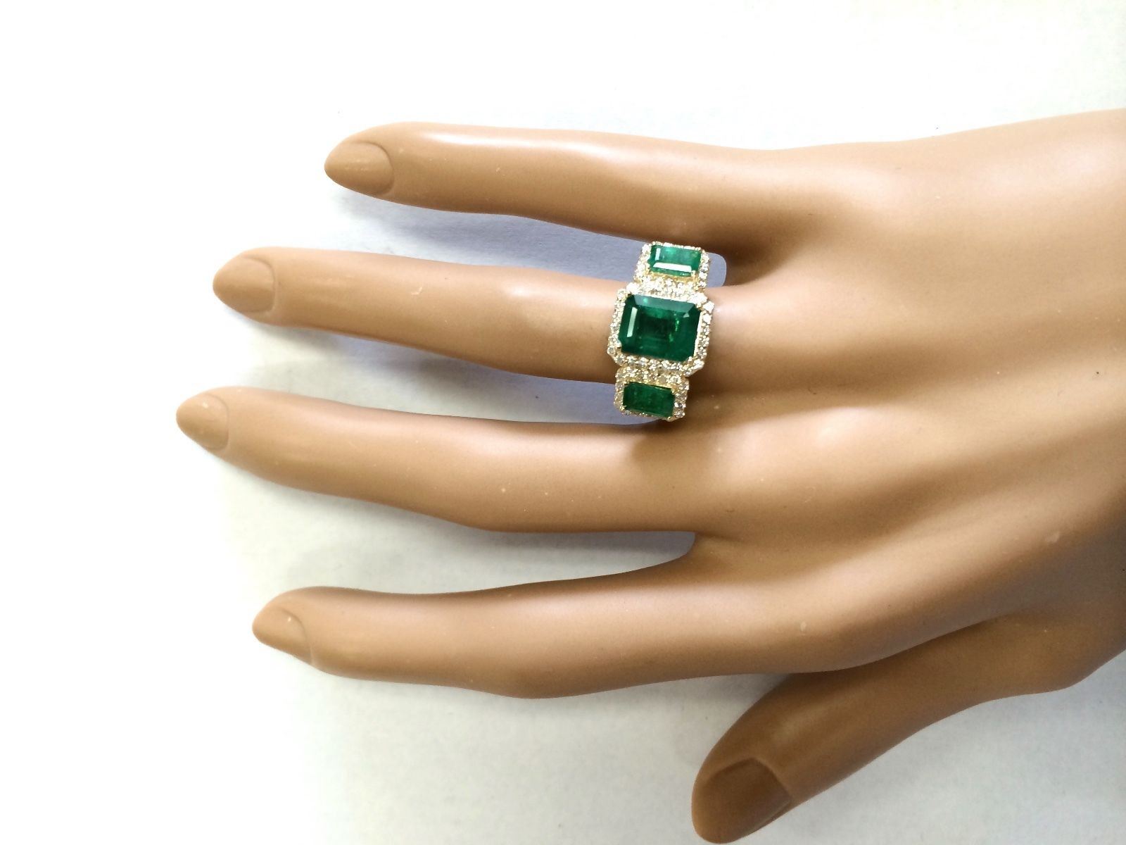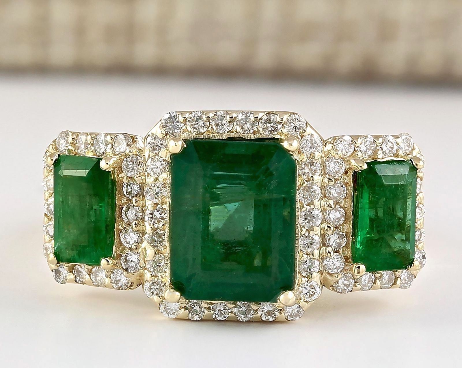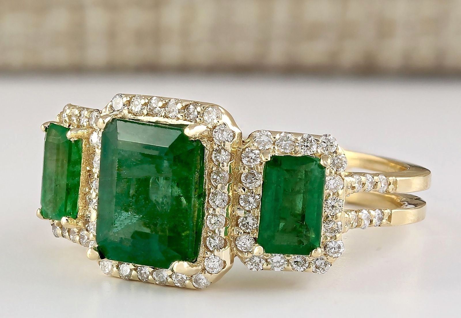 4.56 CTW Natural Emerald And Diamond Ring In 18K Yellow Gold