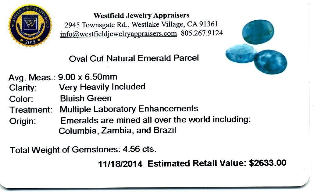 4.56cts. Oval Cut Natural Emerald Parcel Westfield Appraised at $2,633.00.