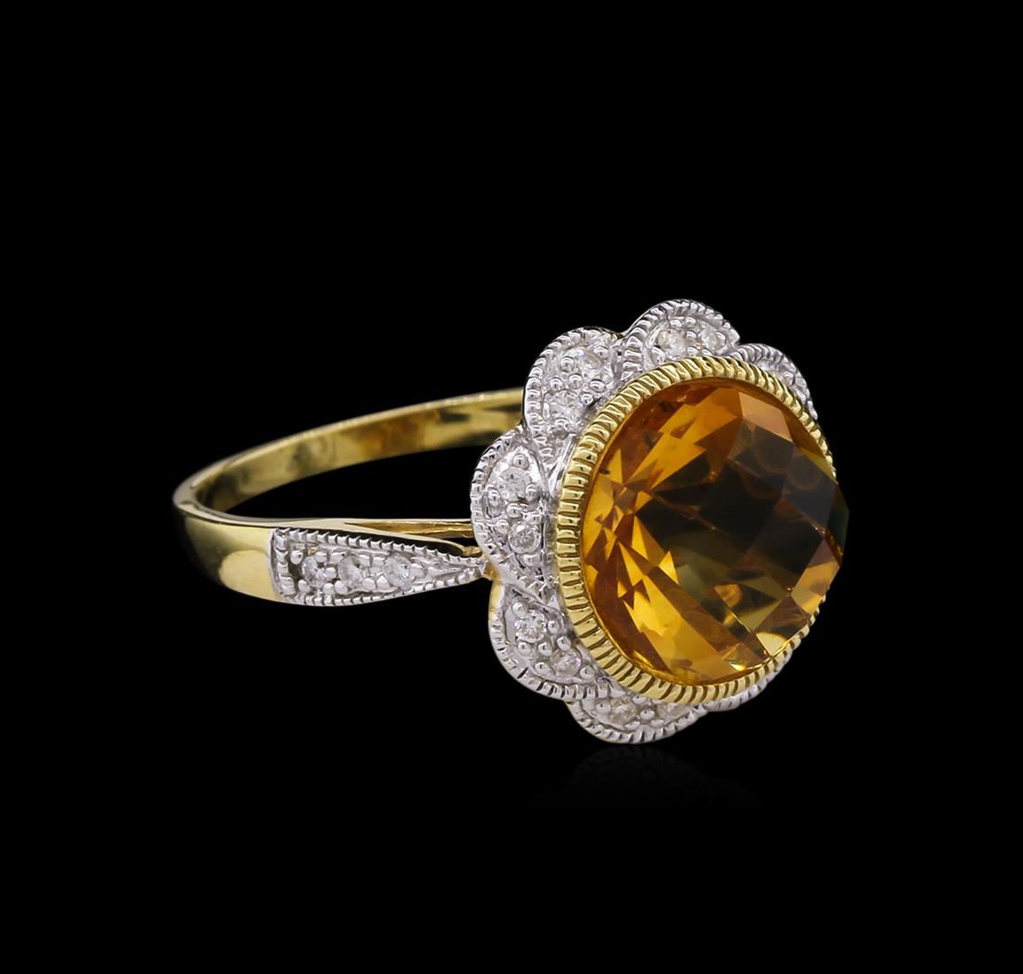 One ring featuring: 14KT yellow gold weighing 4.50 grams containing one citrine center stone with a total weight of 4.56ct and diamonds with a total weight of 0.15ct.