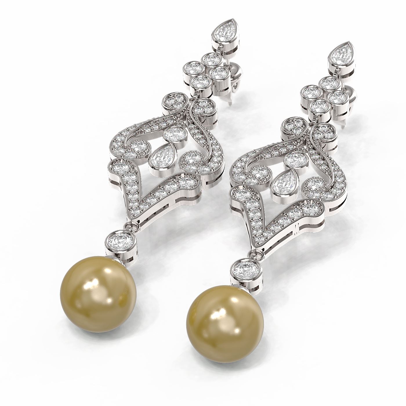 SKU: 55481 ---- 4.57 ctw Diamond & Pearl Earrings 18K White Gold