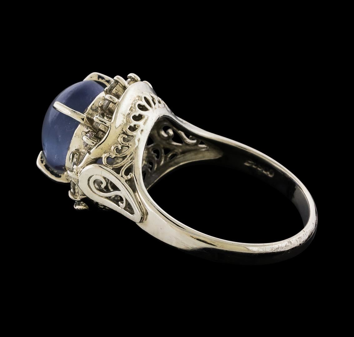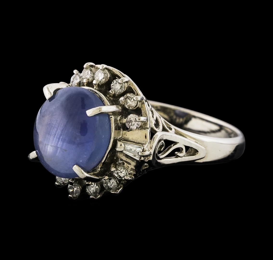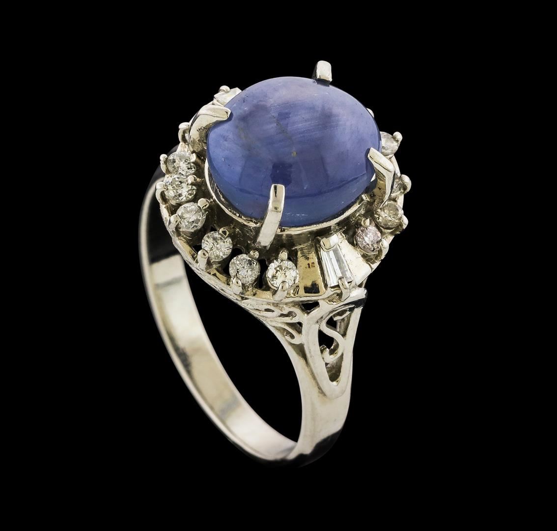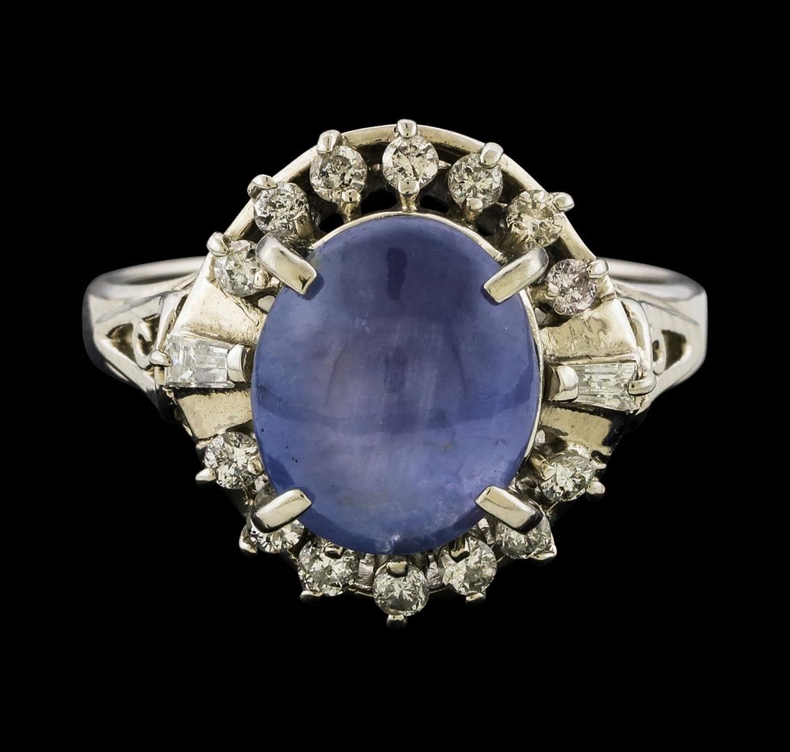 One ring featuring: Platinum containing Star Sapphire with a total weight of 4.57ct and Diamonds with a total weight of 0.36ct. Total Weight of Ring: 7.4 grams.