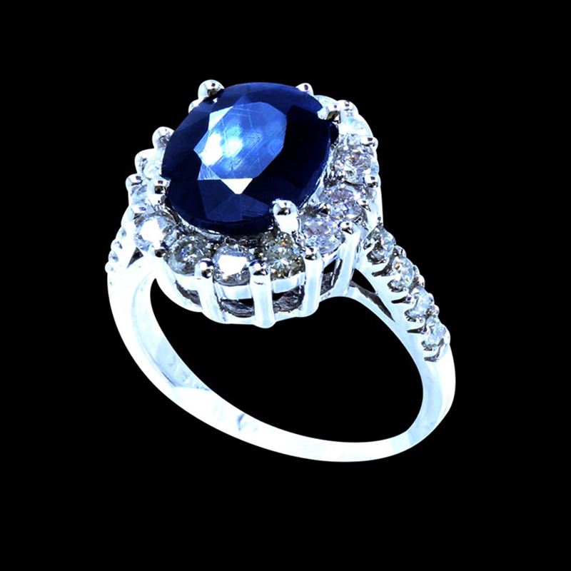 14K WHITE GOLD NATURAL CEYLON BLUE SAPPHIRE RING :6.79GRAM/BLUE SAPPHIRE OVAL: 4.57CT/ DIAMOND RD: 1.12CT/#GVR1256