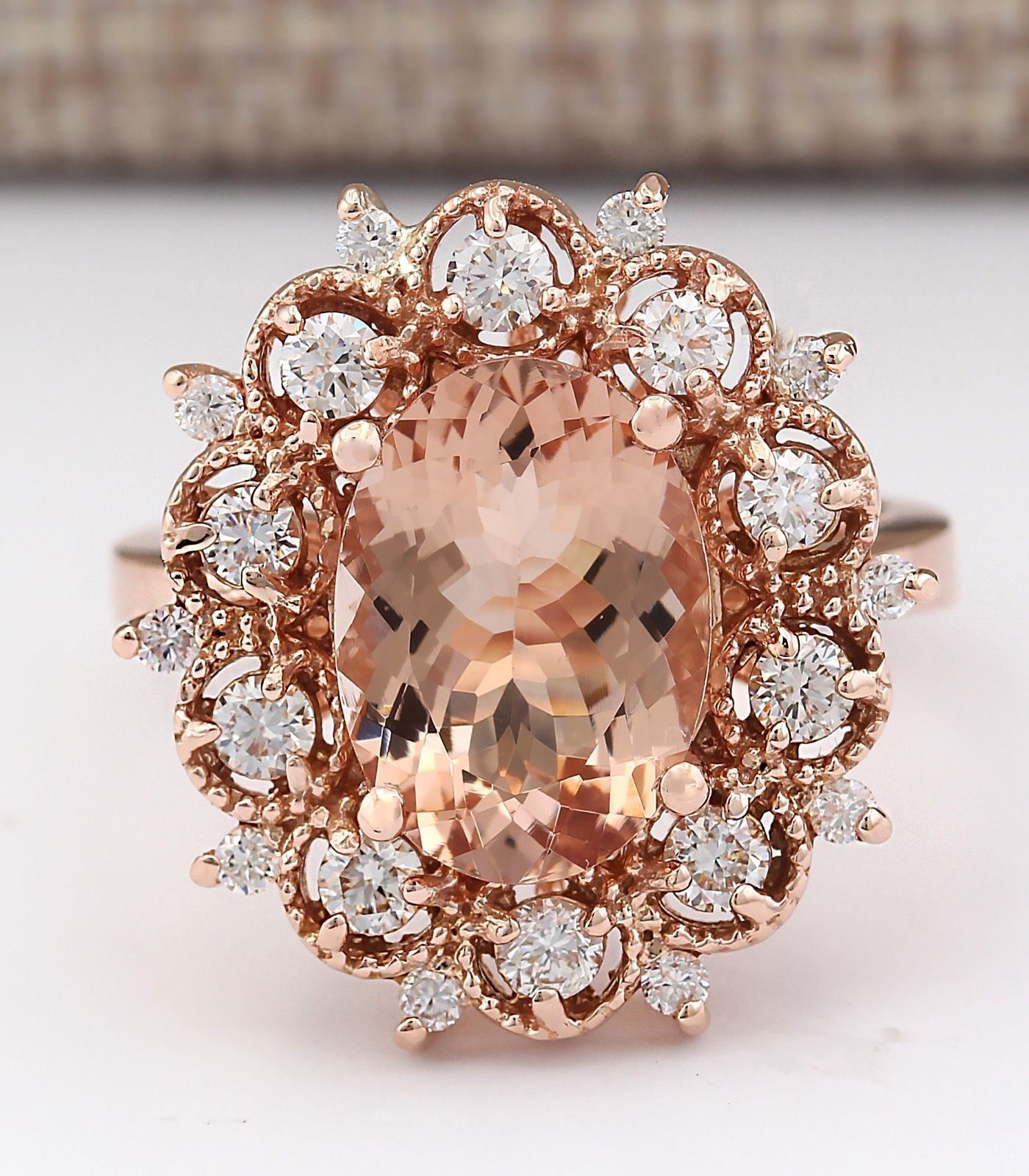 4.58 CTW Natural Morganite And Diamond Ring In 14k Rose Gold