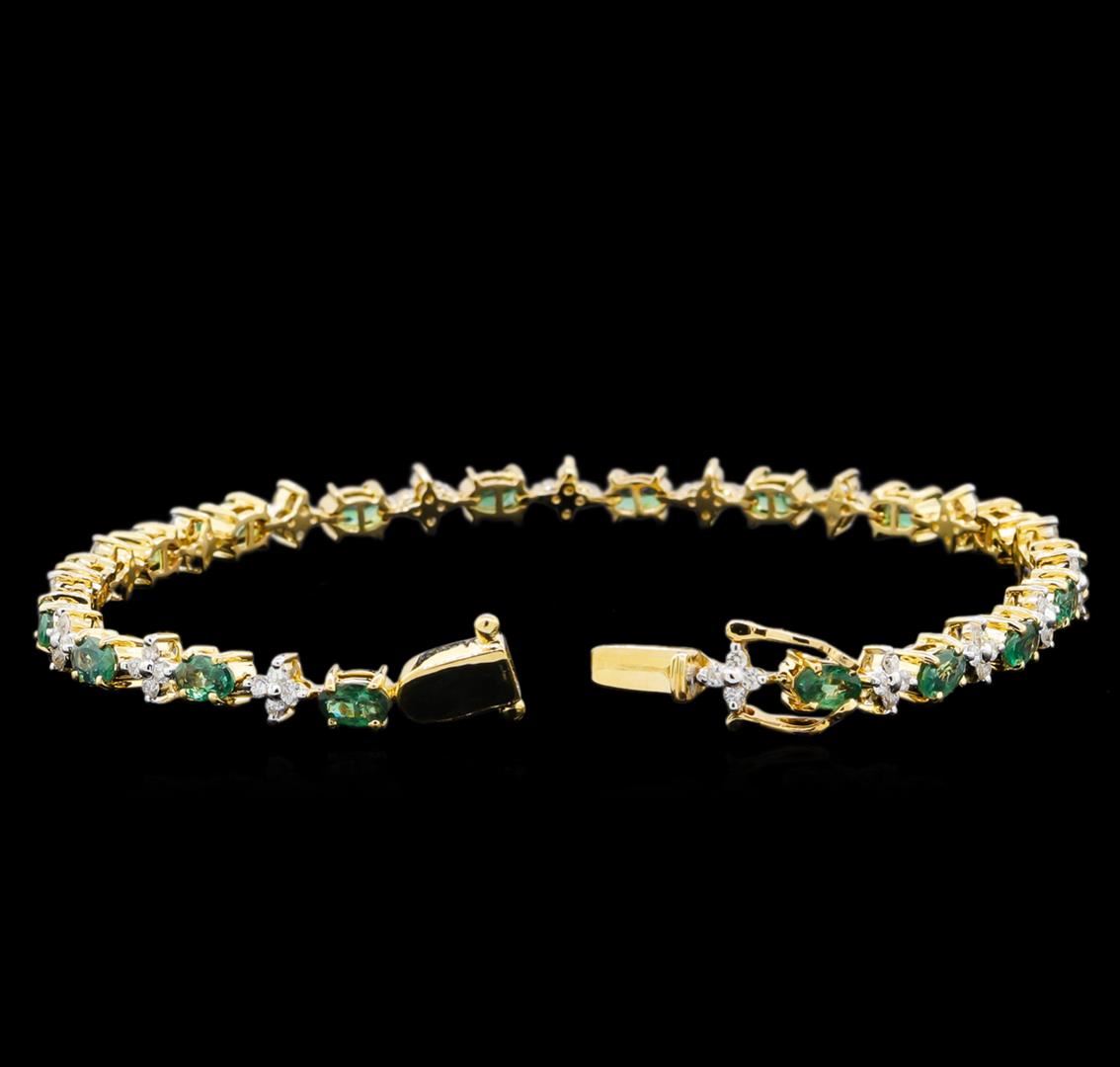 One electronically tested 14KT yellow gold lady's combination cast & assembled fashion straight line tennis bracelet with a tongue clasp with foldover safety with a bright polish finish. The featured lady's bracelet measures 7.5 inches in length. Identified with markings of "14K". Condition is new, good workmanship. Containing: Eighteen prong set oval modified brilliant cut natural alexandrites, measuring 5.02 x 3.01 x 2.10mm, (depth est.) approximate total weight of 4.58ct., clarity is slightly included, medium, slightly grayish, slightly yellowish green color, (GIA slyG 5/2) to medium light, very slightly grayish, slightly purplish red, (GIA slpR 4/3), cut is good. Transmitting light with no distortion, transparent. Colored gemstones are presumed to have been subjected to commonly used enhancement processes. Graded in the setting. Seventy-Two prong set round brilliant cut diamonds, measuring 1.55 - 1.50 x 0.93mm (depth est.) approximate total weight of 72 Stones = 0.97ct. Graded in the setting. Clarity: SI-1 to SI-2. Color: G - Good. Total Weight of Colored Stones 4.58ct. Total Weight of Diamonds 0.97ct. Total Weight of Straight Line Tennis Bracelet 10.00gm. GAS Appraised at $14,850.00.