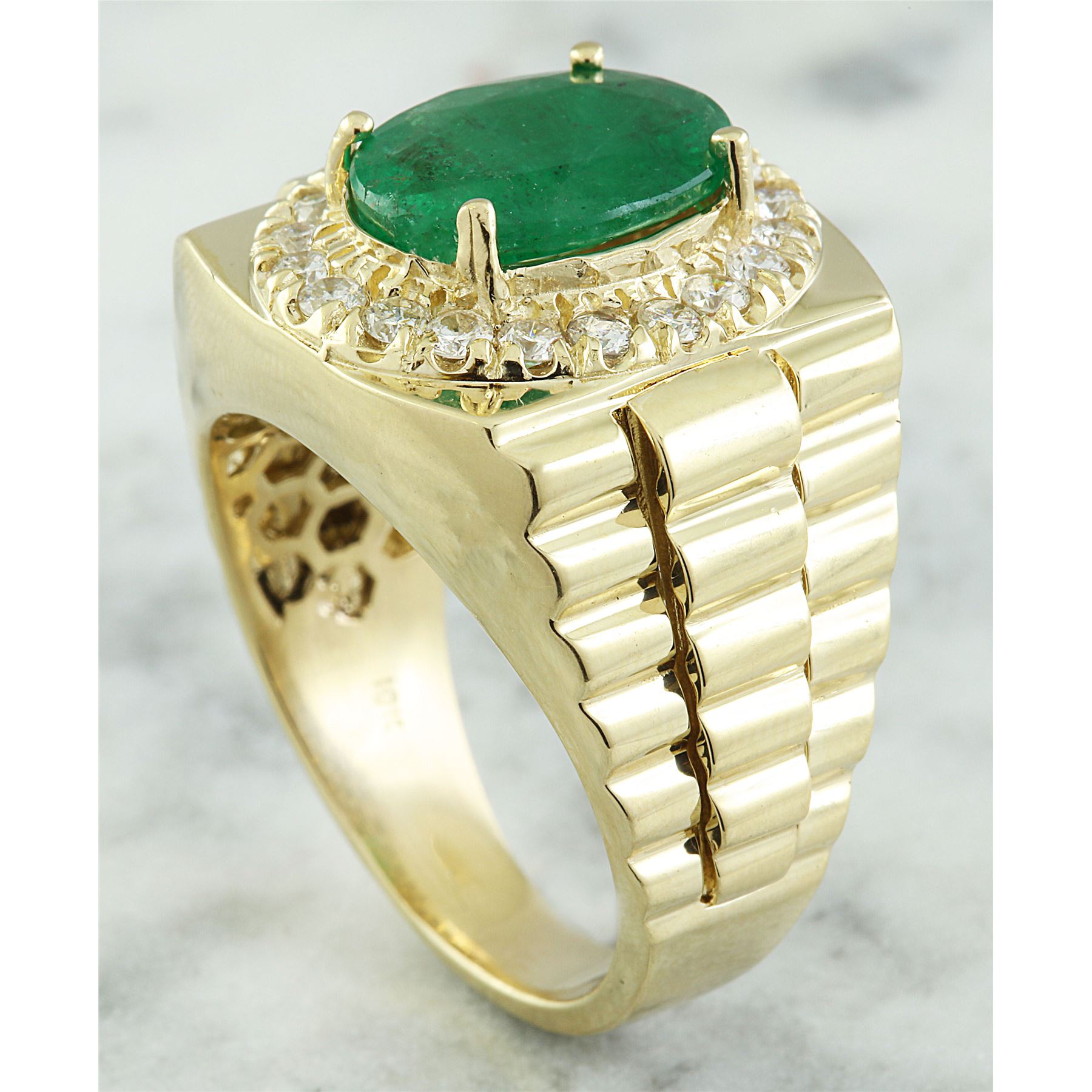 4.59 CTW Mens Emerald 14K Yellow Gold Diamond Ring