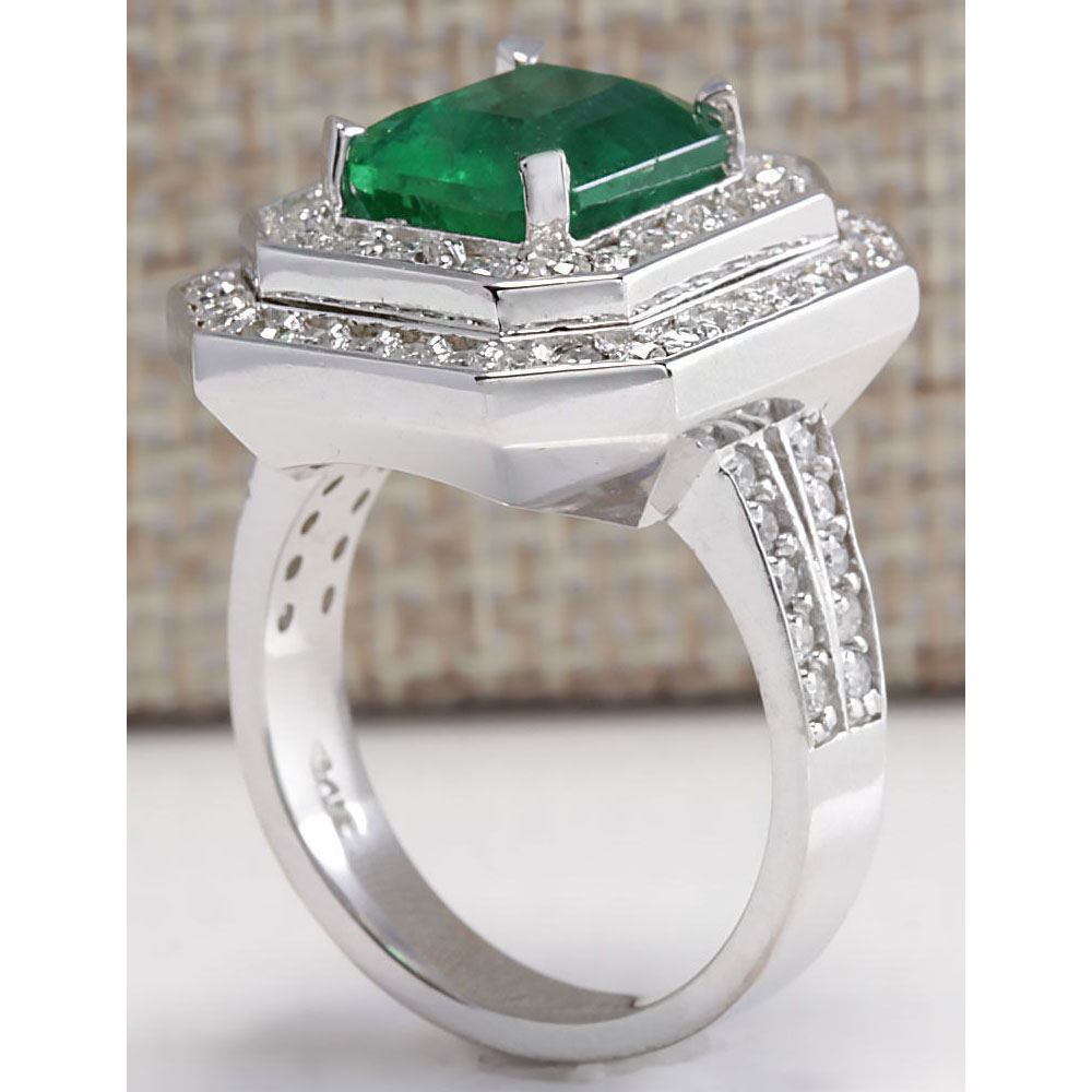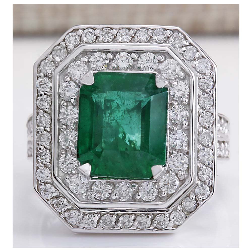 4.59 CTW Natural Emerald And Diamond Ring 14K Solid White Gold