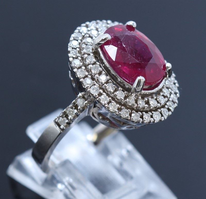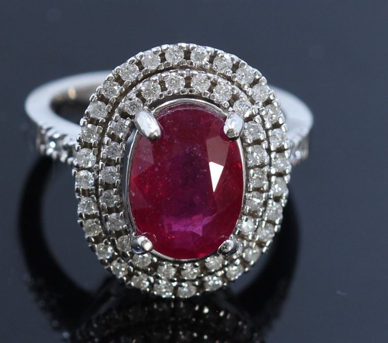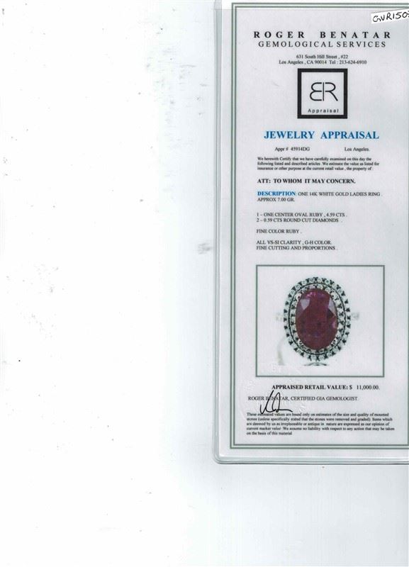 14K W/G RING: 7.00GR / DIA :0.59CT / RUBY :4.59CT /#GVR1507