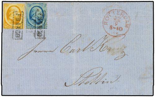 4,6 1866 ROTTERDAM a STETTIN. 5 cts. azul y 15 cts. amarillo.