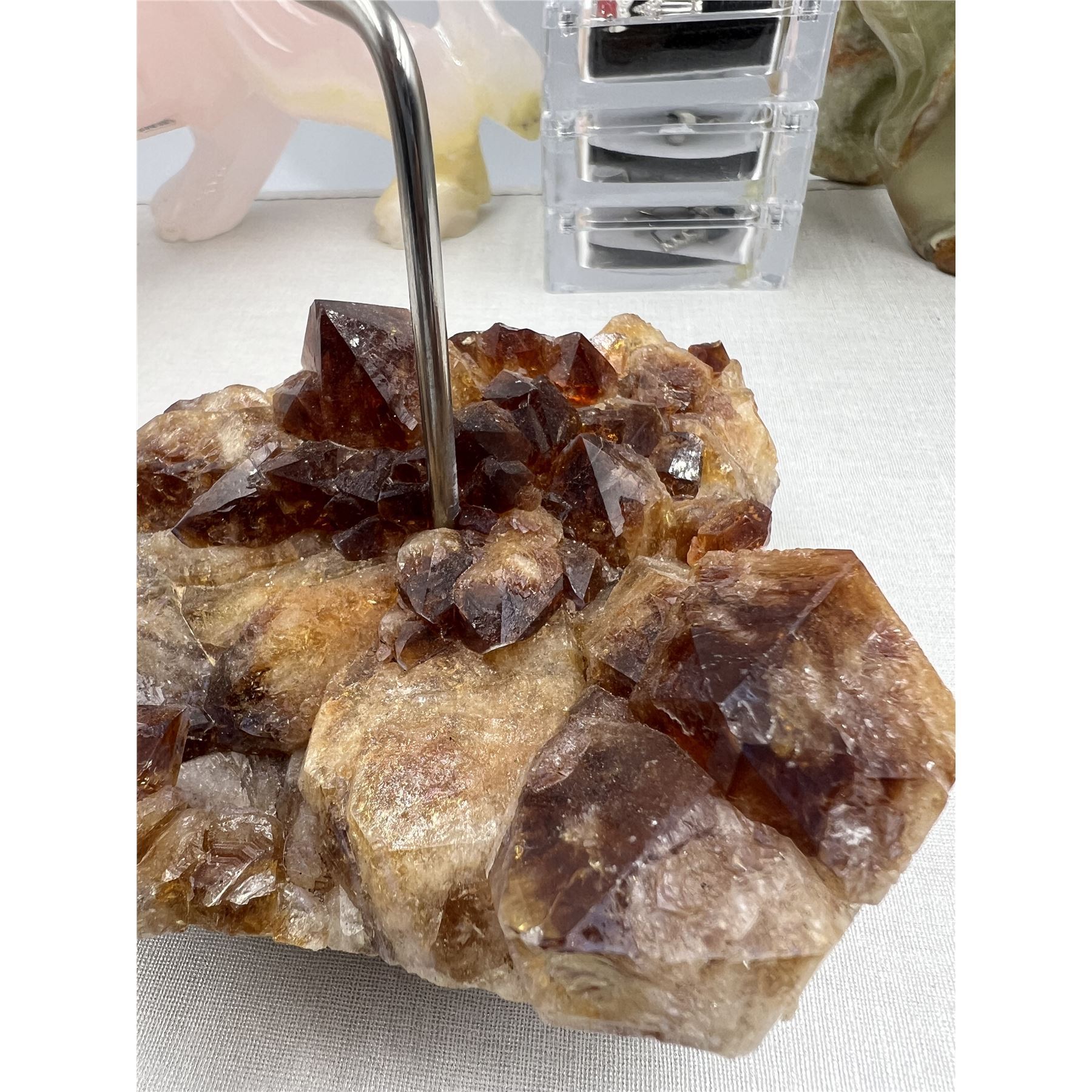 4.6 INCH HIGH GRADE CITRINE CANDLE HOLDER (HEATED AMETHYST)