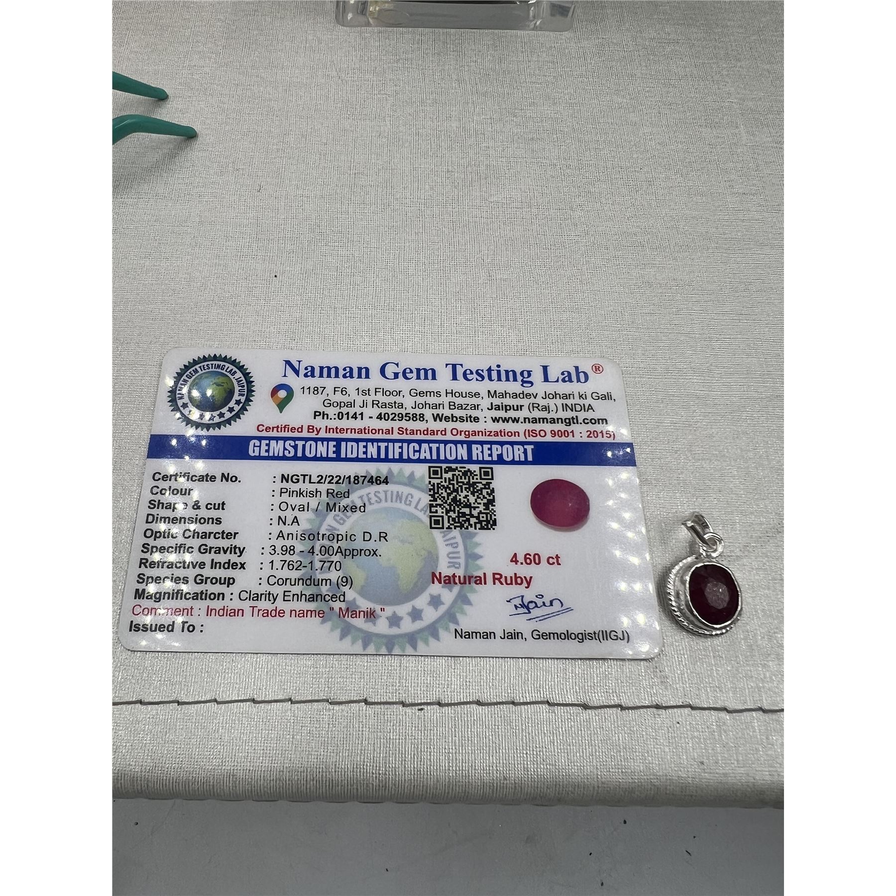 4.60 CT NATURAL RUBY SILVER PENDANT OVAL CUT CERTIFICATION