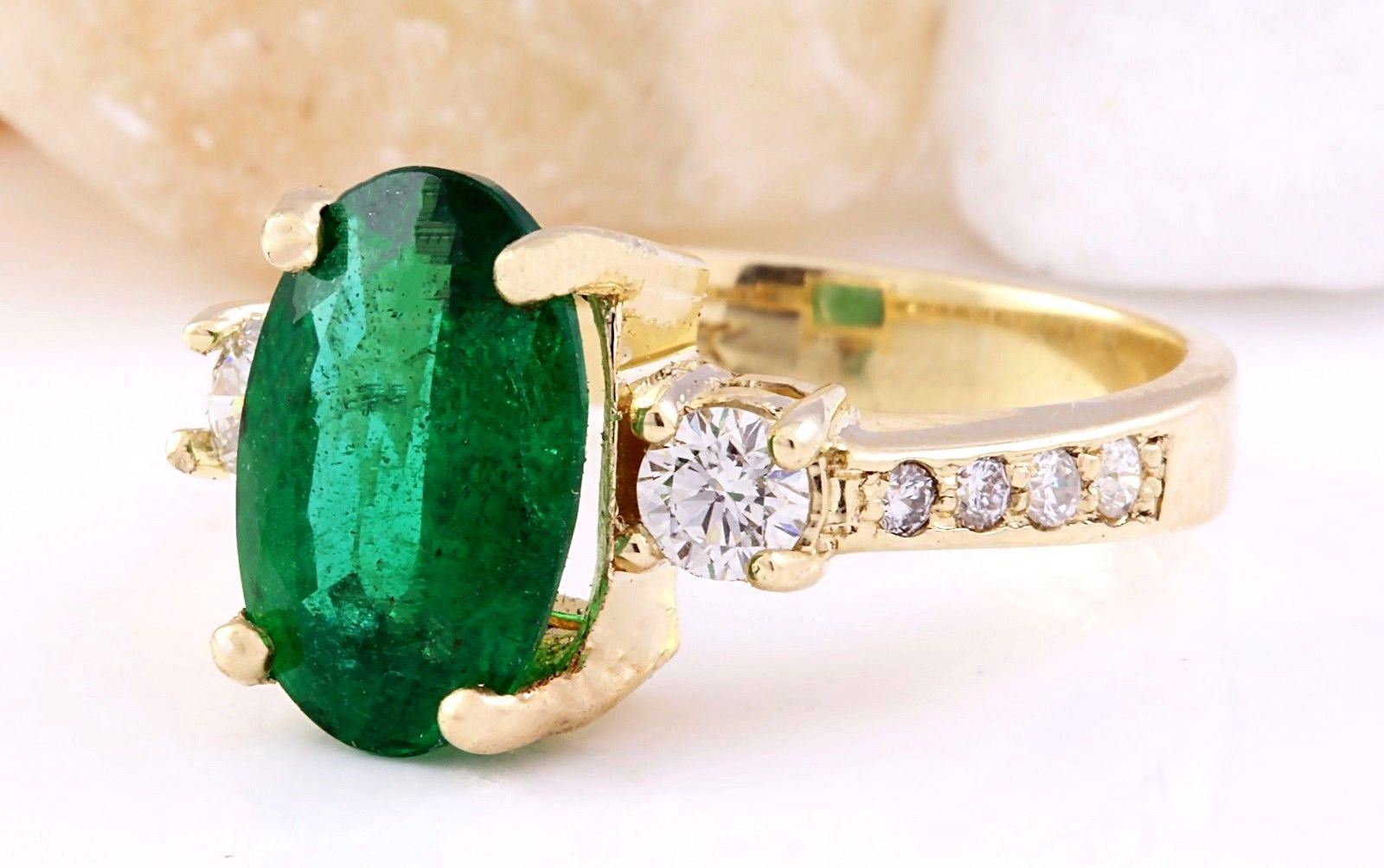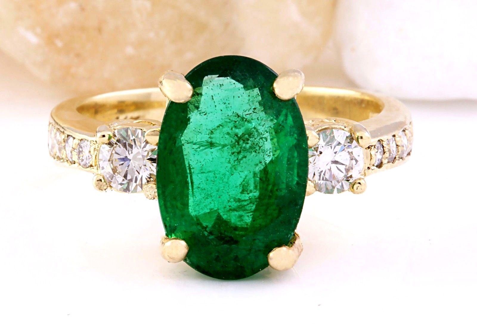 4.60 Carat Natural Emerald 14K Solid Yellow Gold Diamond Ring