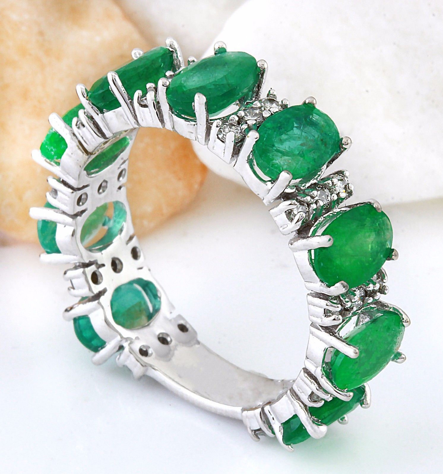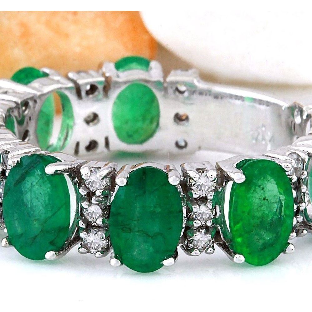 4.60 CTW Natural Emerald 18K Solid White Gold Diamond Ring