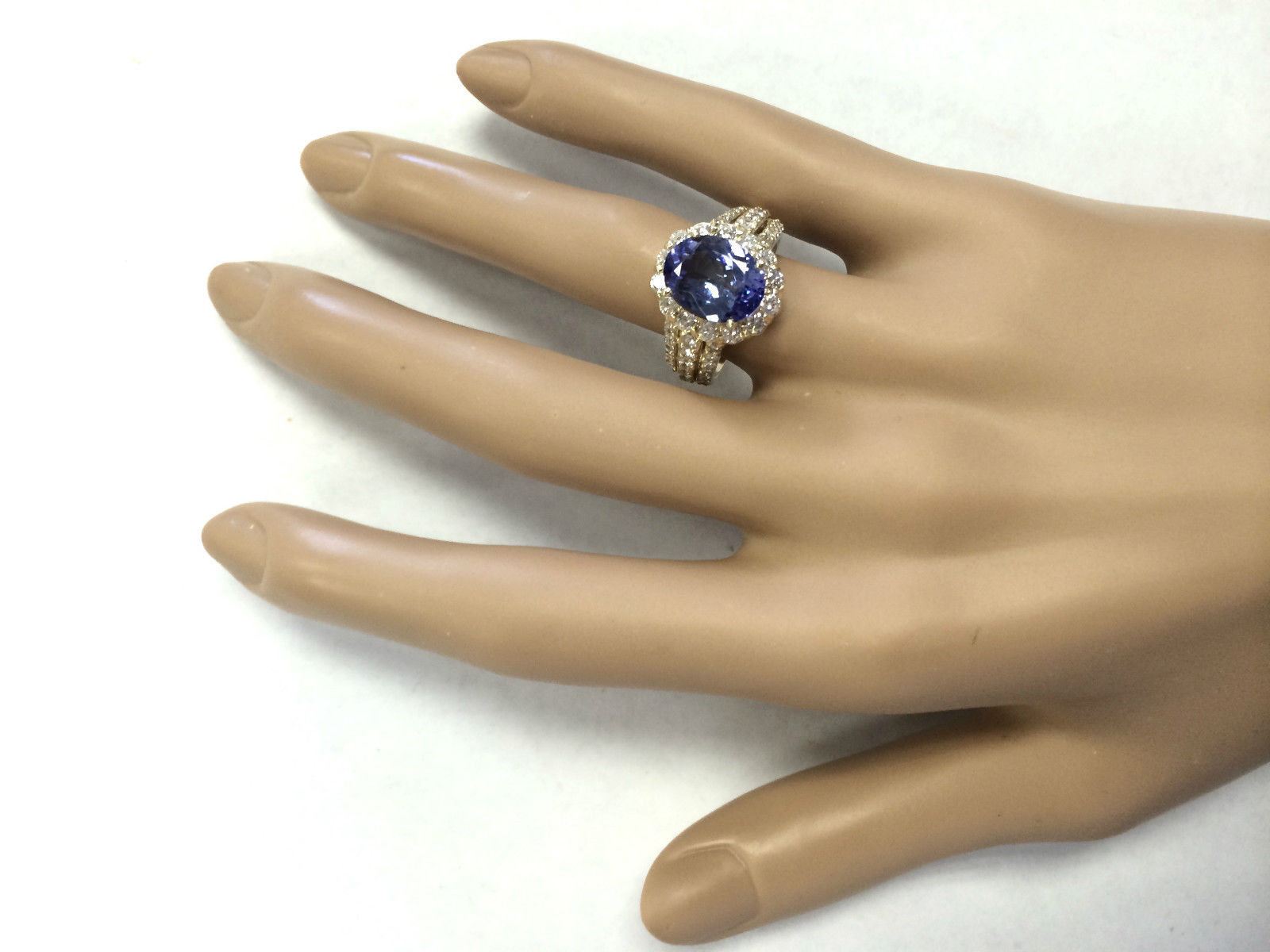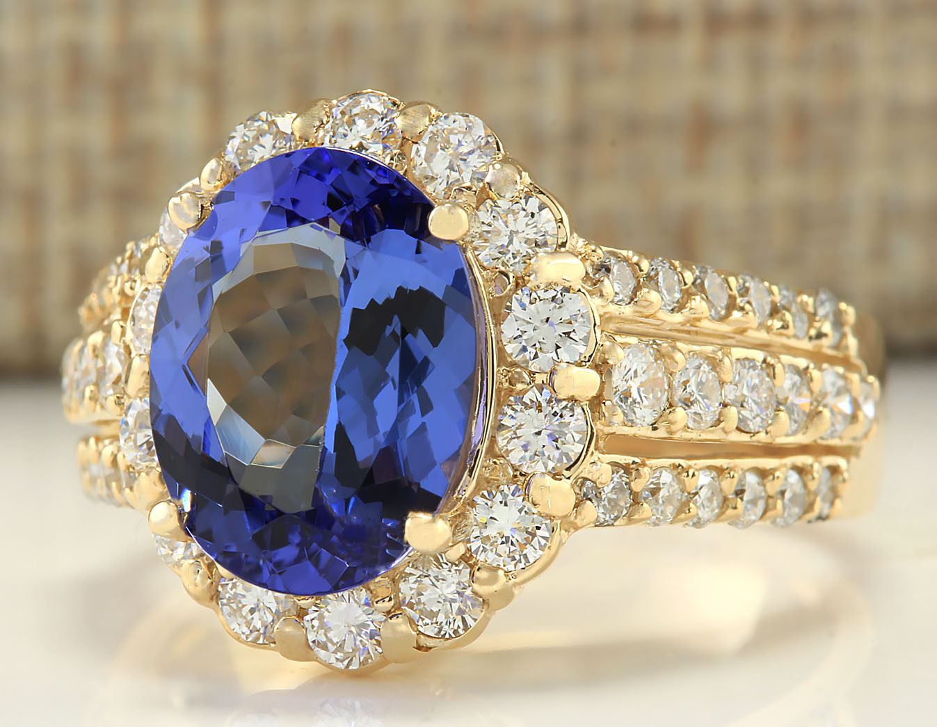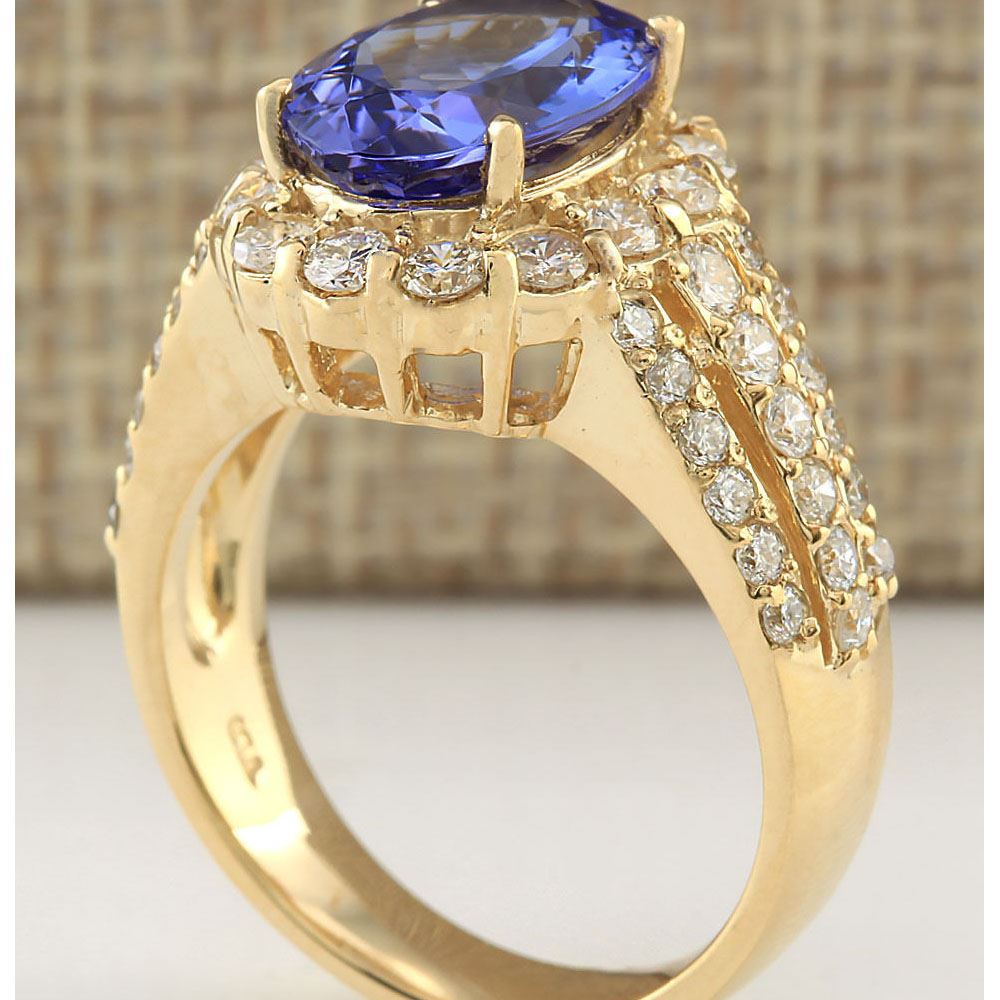 4.60 CTW Natural Tanzanite And Diamond Ring In 14k Yellow Gold