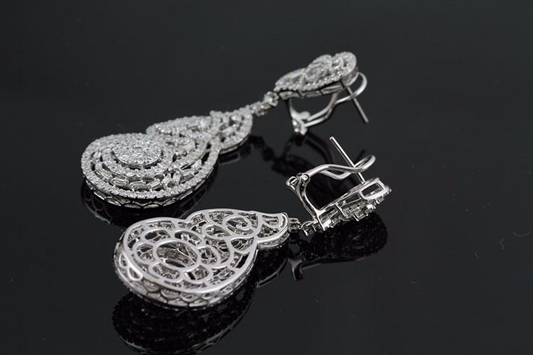 4.60 ctw Diamond Earring Baguette & Round Diamond Color&Clarity (F, SI2-I1) 18K White Gold Dim. Height 55mm x 20mm push box clasp