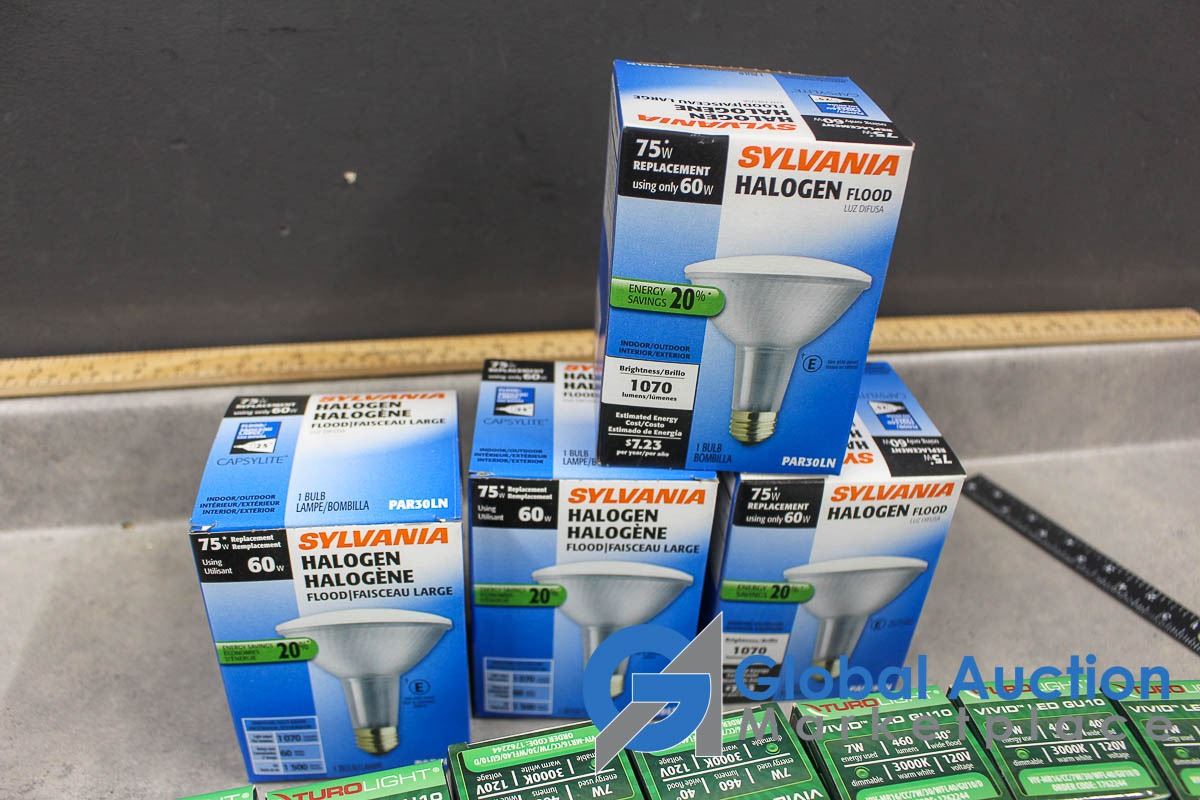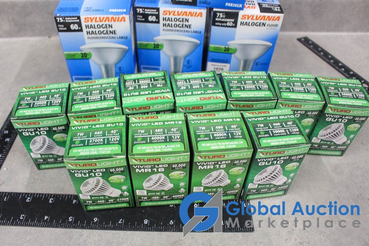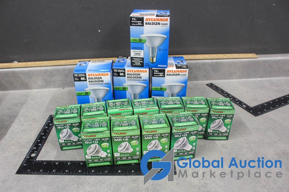 (4) 60w Halogen Light Bulbs and (11) 7w LED Bulbs