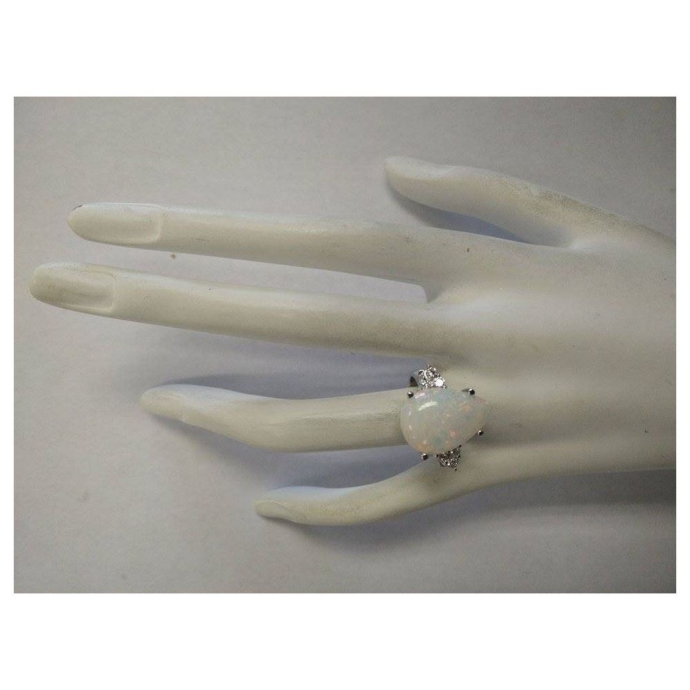 4.61 CTW Natural Opal And Diamond Ring In 18K White Gold