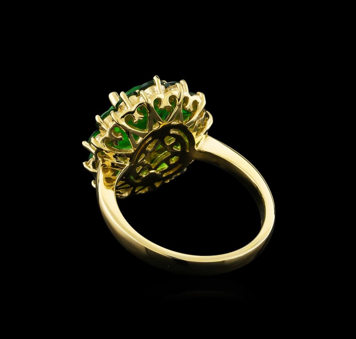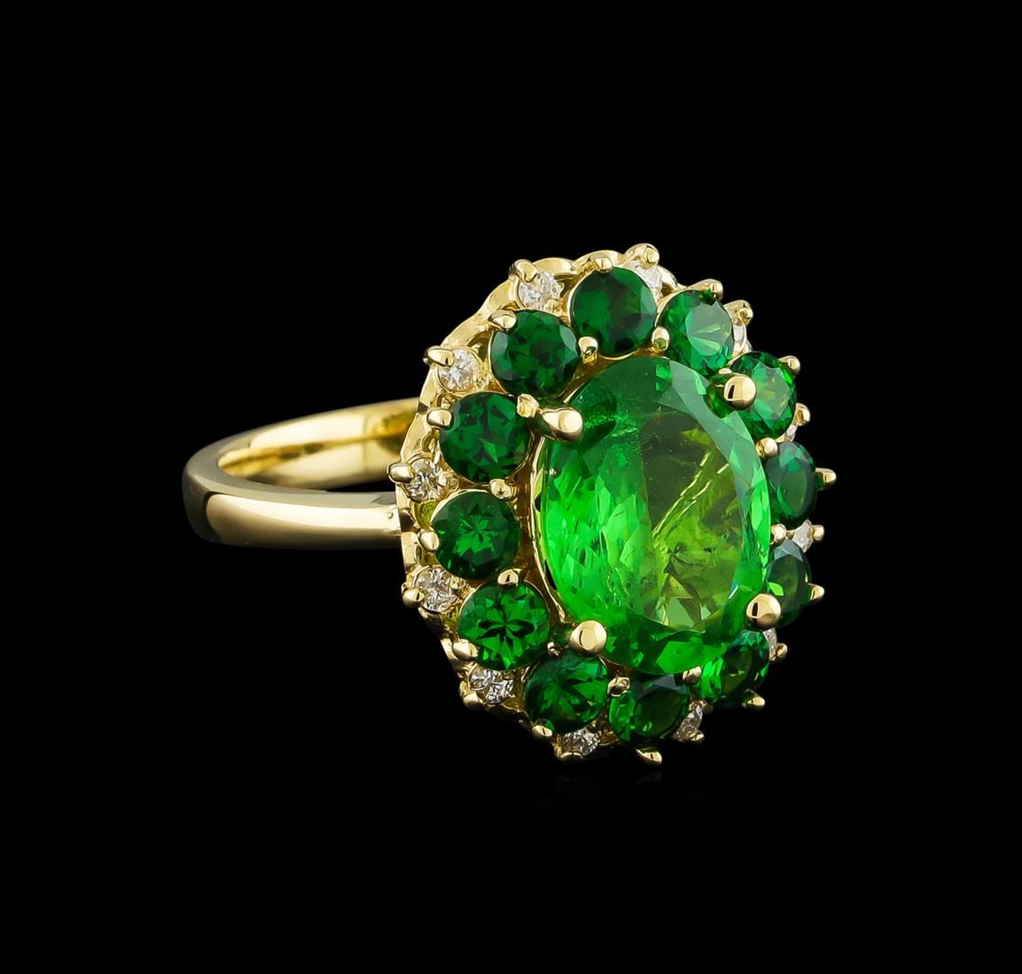 One Ring featuring: 14KT Yellow Gold weighing 6.15 grams containing one Tsavorite-Multi center stone with a total weight of 4.61ct and Diamonds with a total weight of 0.15ct.