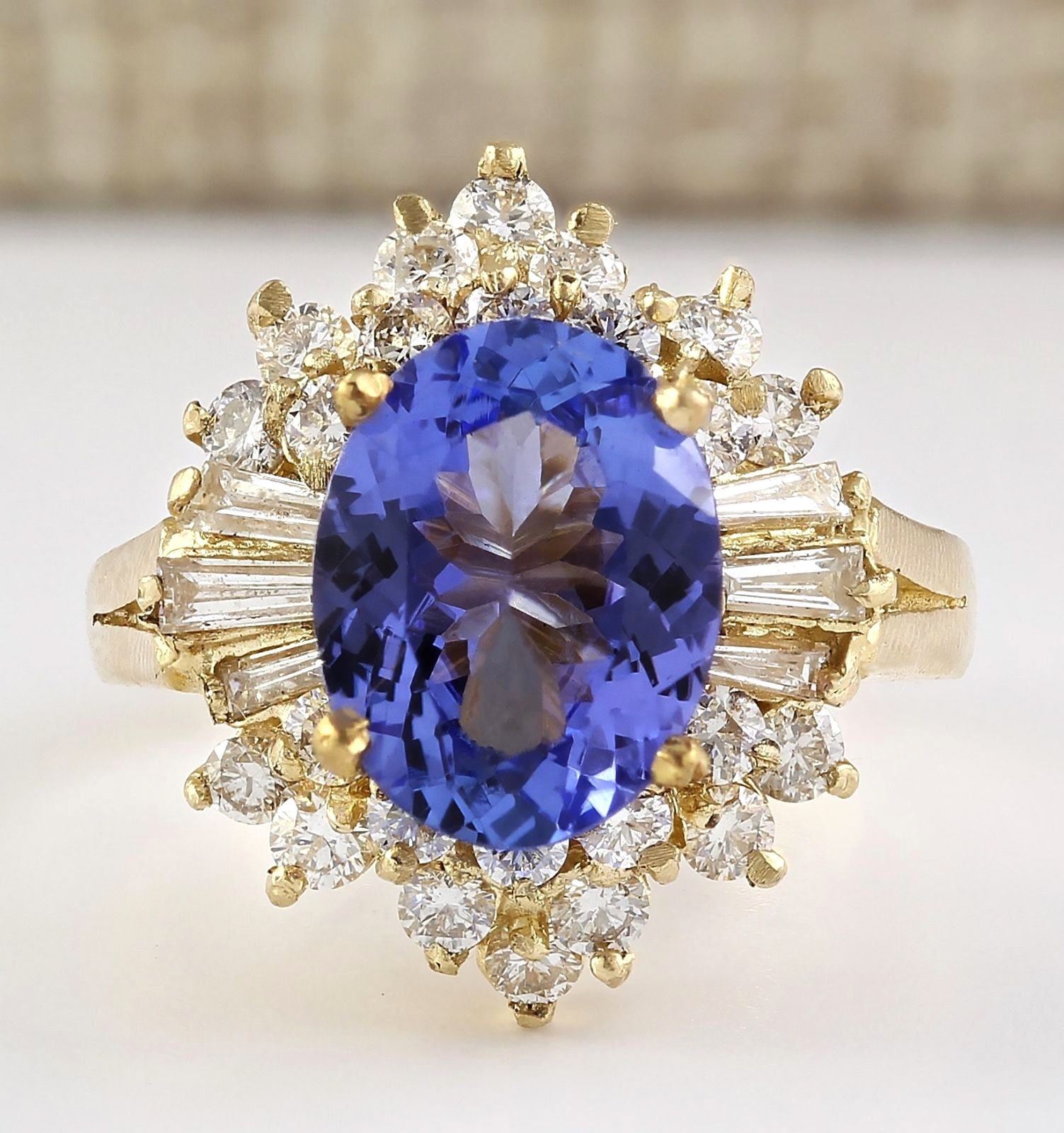 4.62 CTW Natural Tanzanite And Diamond Ring In 18K Yellow Gold
