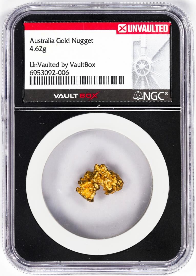 One 4.62 Gram Australia Gold Nugget NGC Vaultbox Unvaulted. NGC Certified.