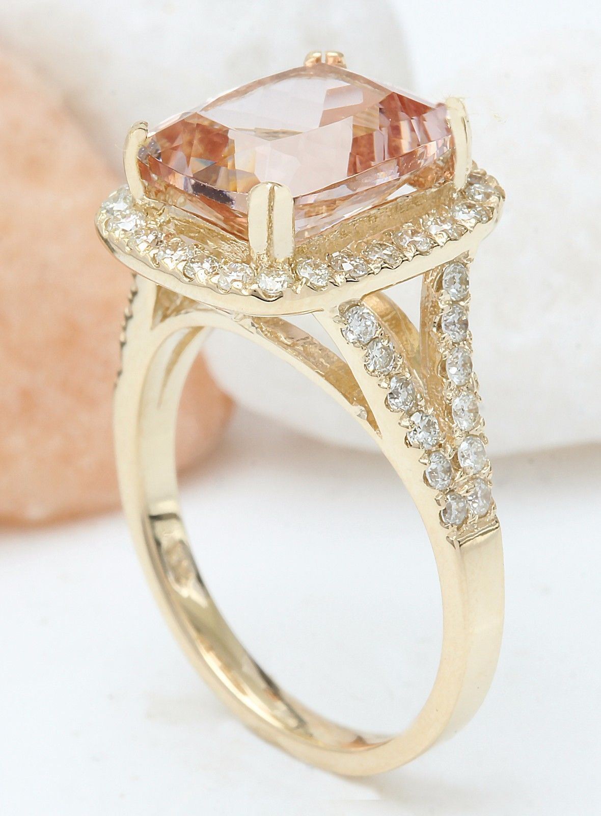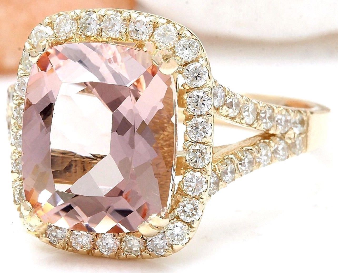 4.63 Carat Natural Morganite 18K Solid Yellow Gold Diamond Ring