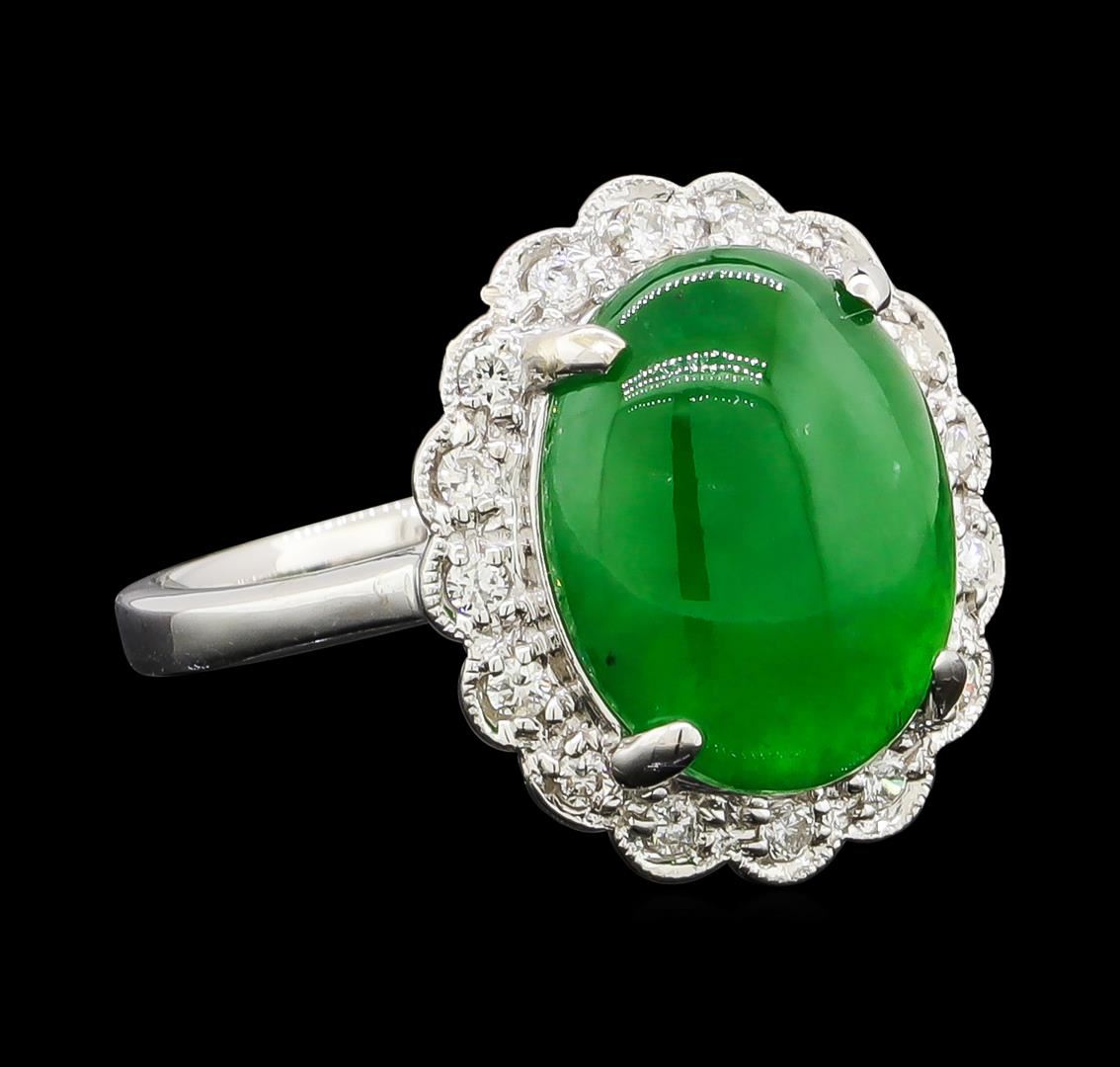 One ring featuring: Platinum containing Jade with a total weight of 4.63ct and Diamonds with a total weight of 0.18ct. Total Weight of Ring: 4.6 grams.